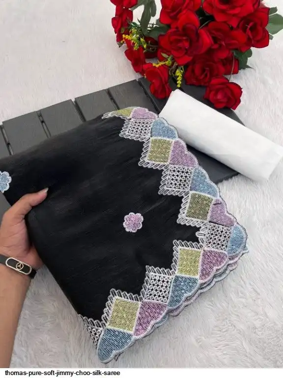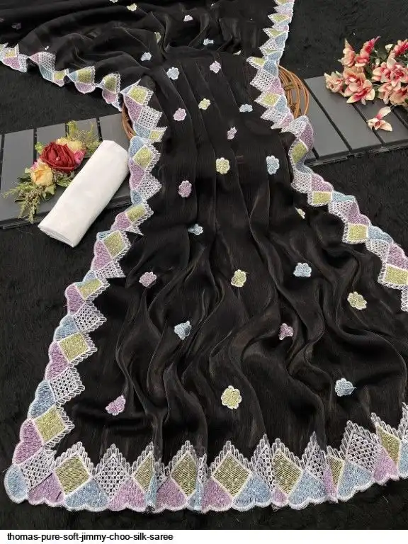 SAREES FABRICS:-Pure Soft Jimmy choo silk with 3 mm sequence multi thread embroidered work sarees