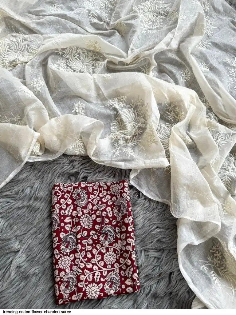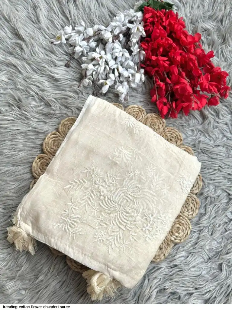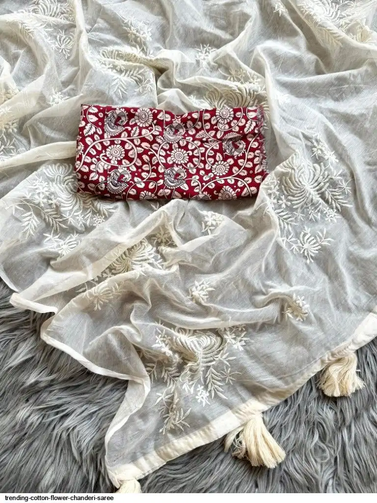 Primium Chanderi cotton With Exclusive Flower Work And Heavy Cotton Tussels