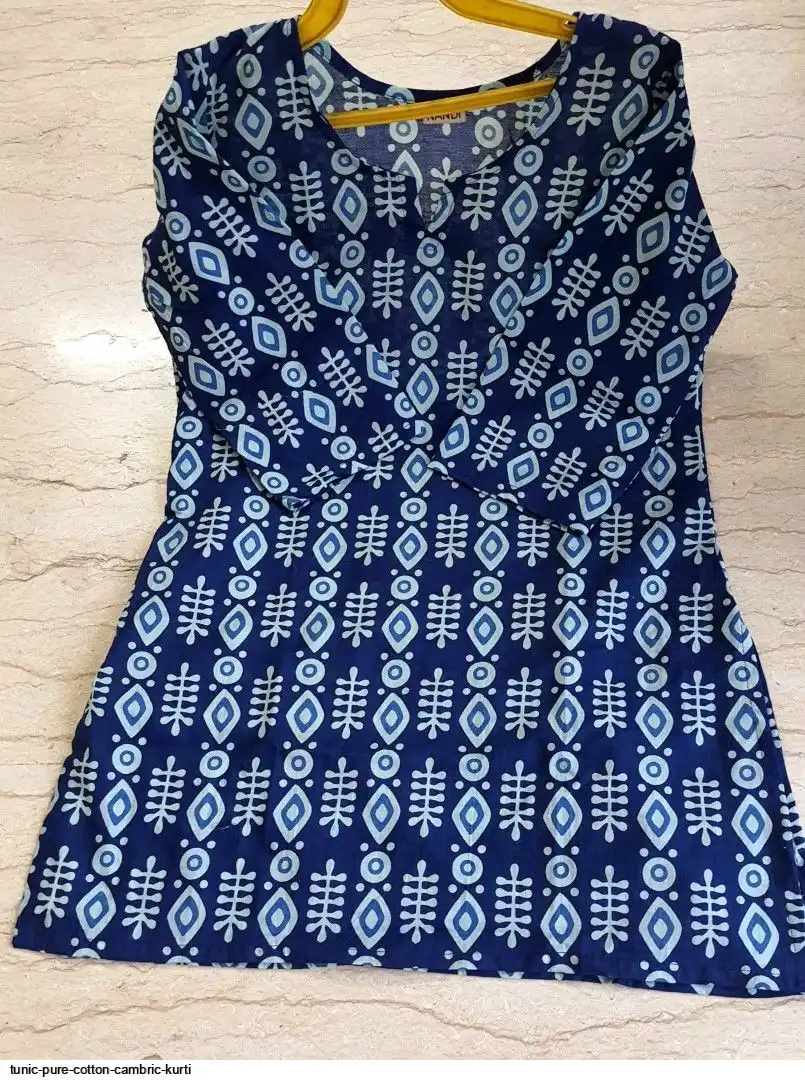 This tunic is made of pure cotton cambric fabric which gives excellent look. It has 3/4th sleeves with side slit.