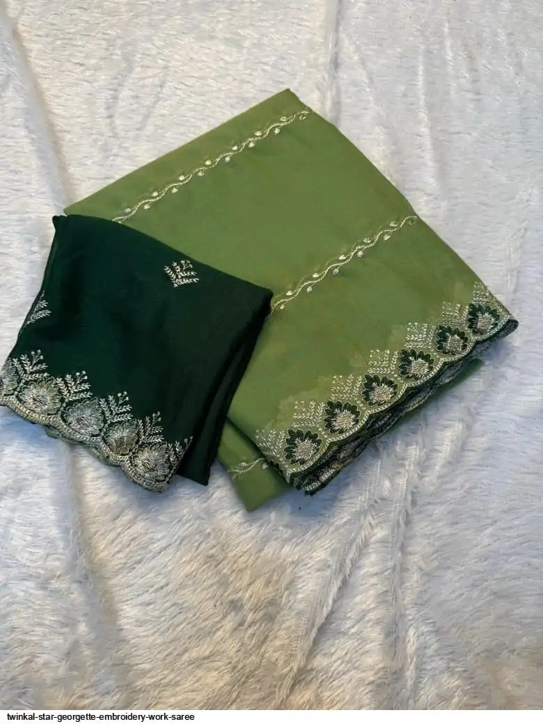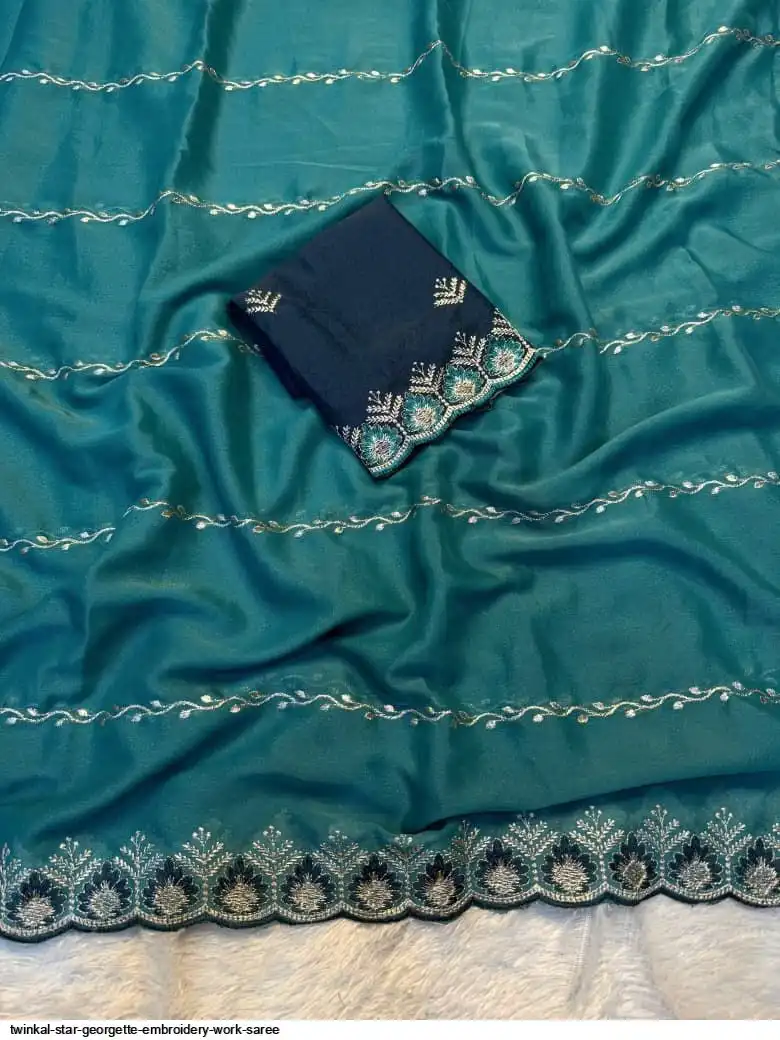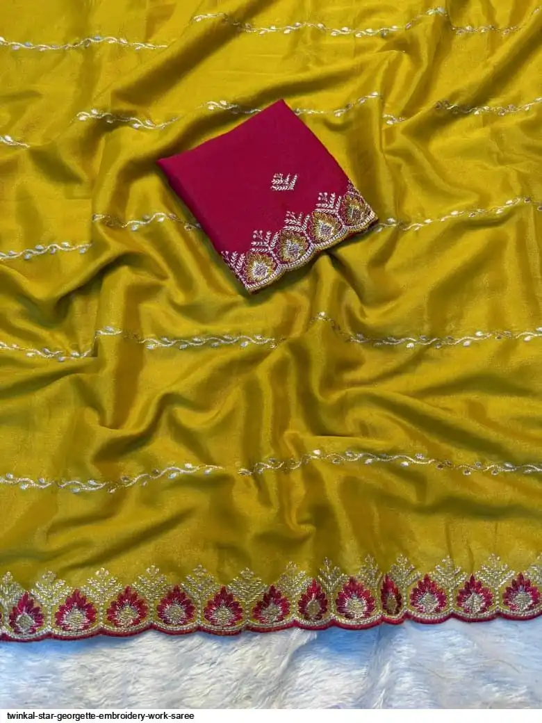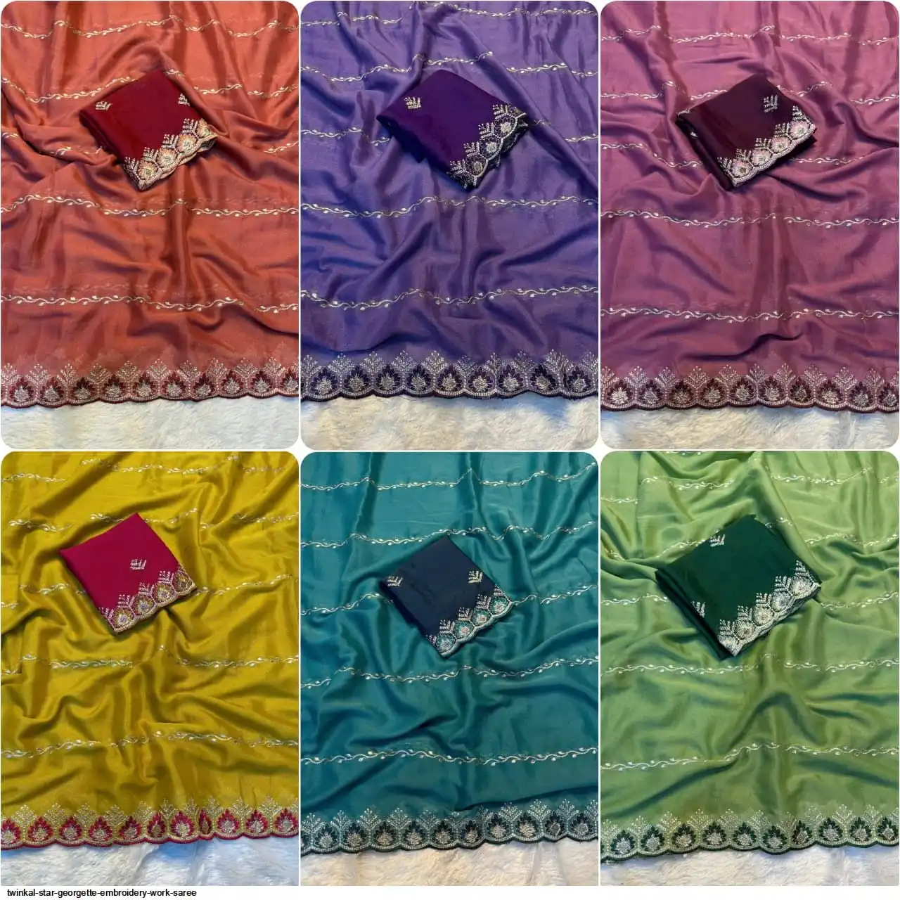 Fabric - Star georgett fabric with c-pallu work with lehariya desgin
