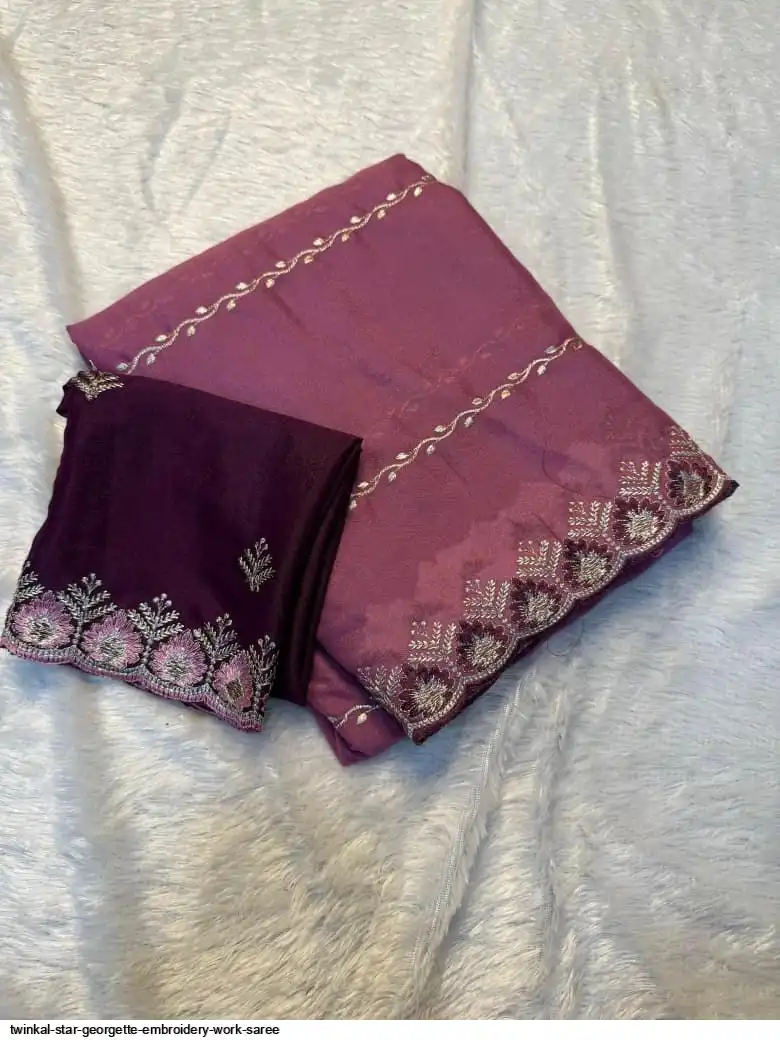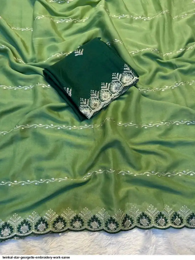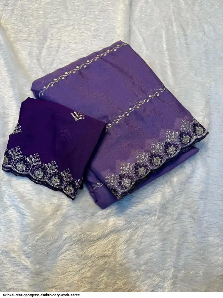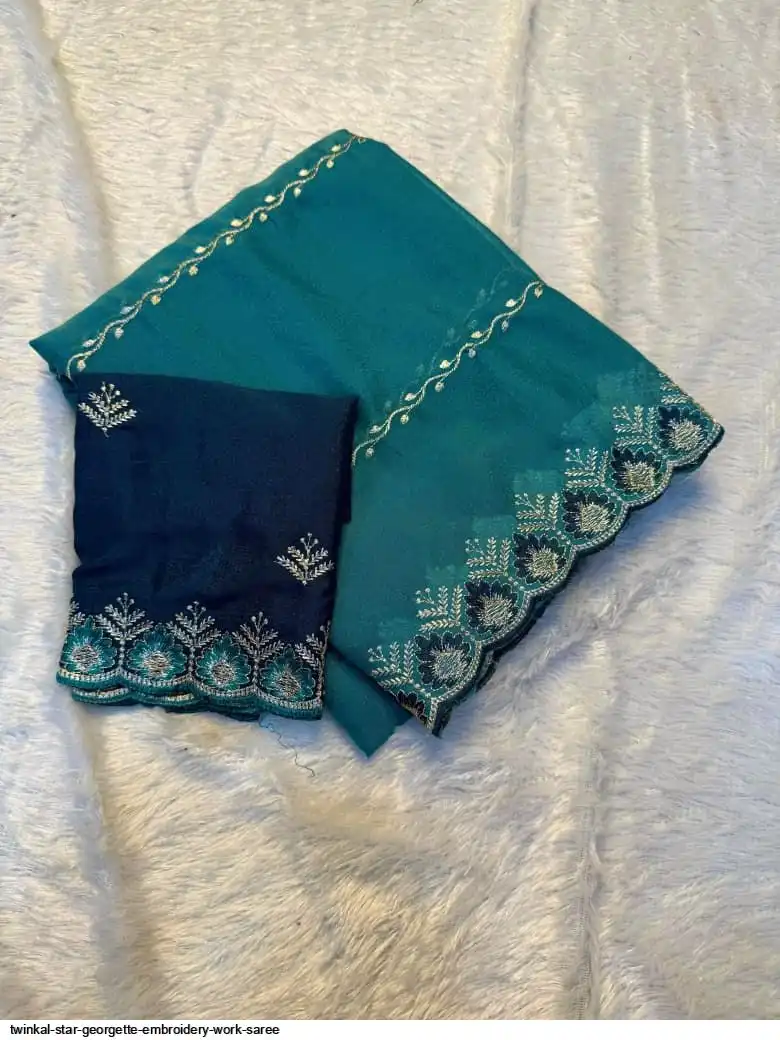 Fabric - Star georgett fabric with c-pallu work with lehariya desgin