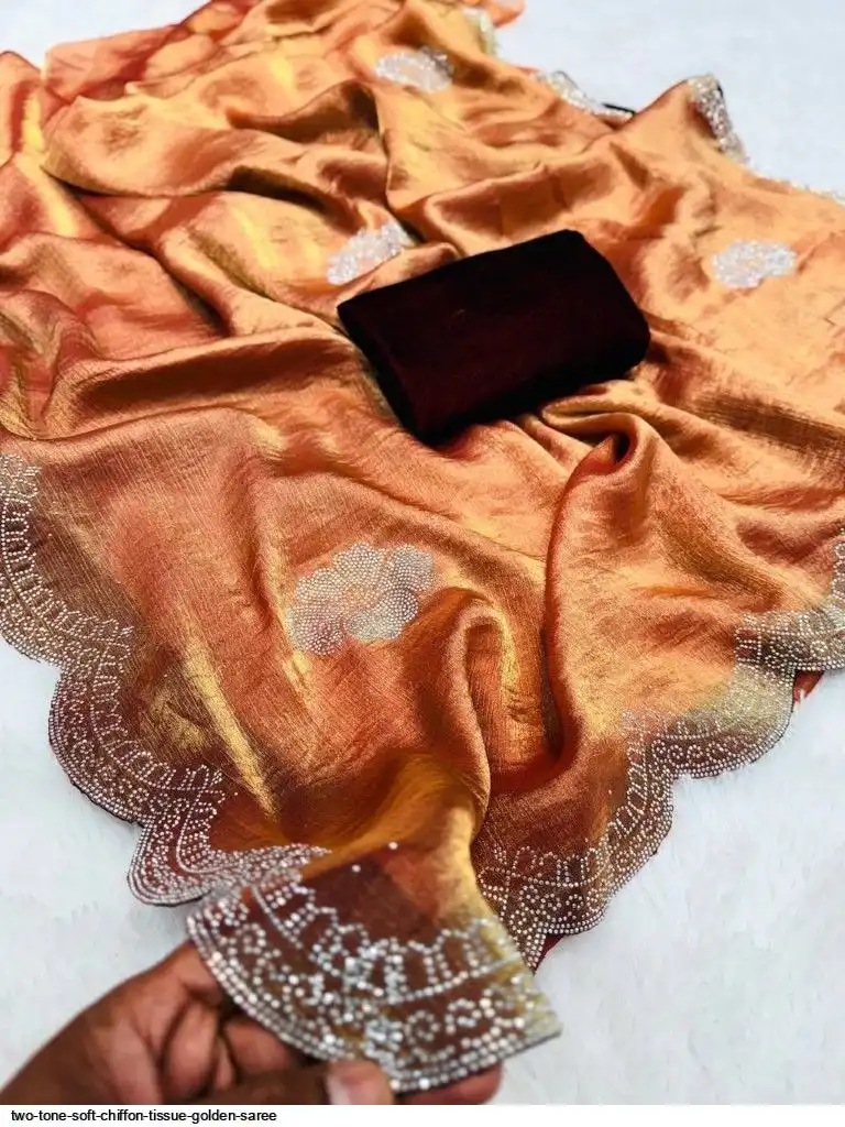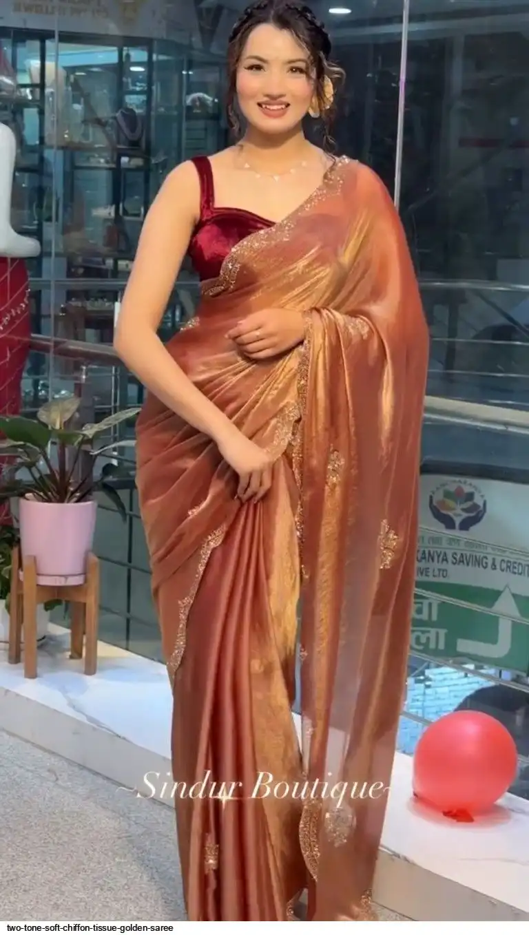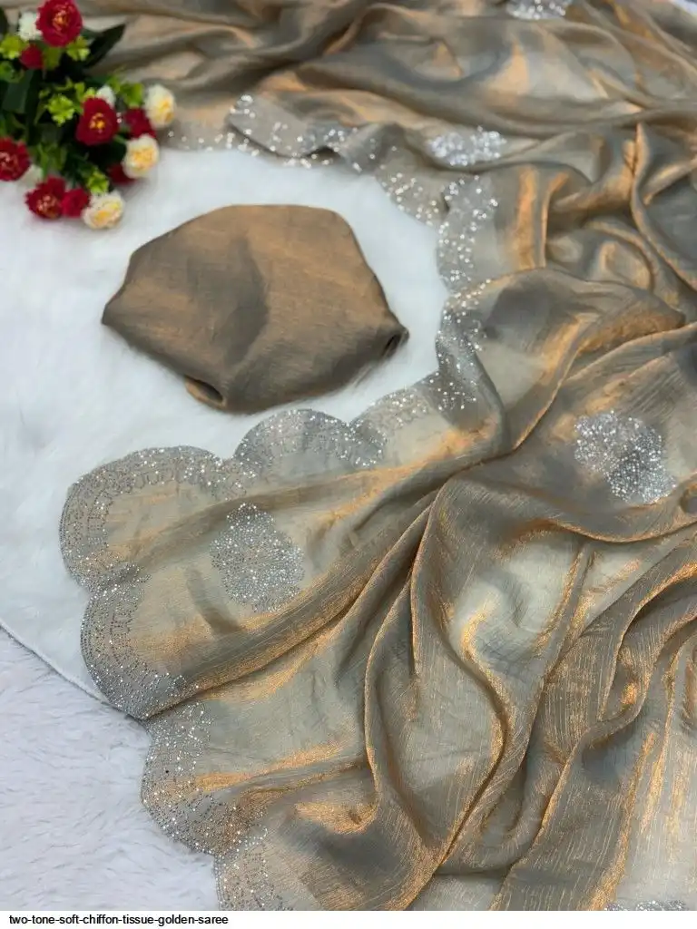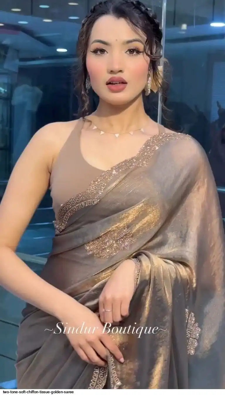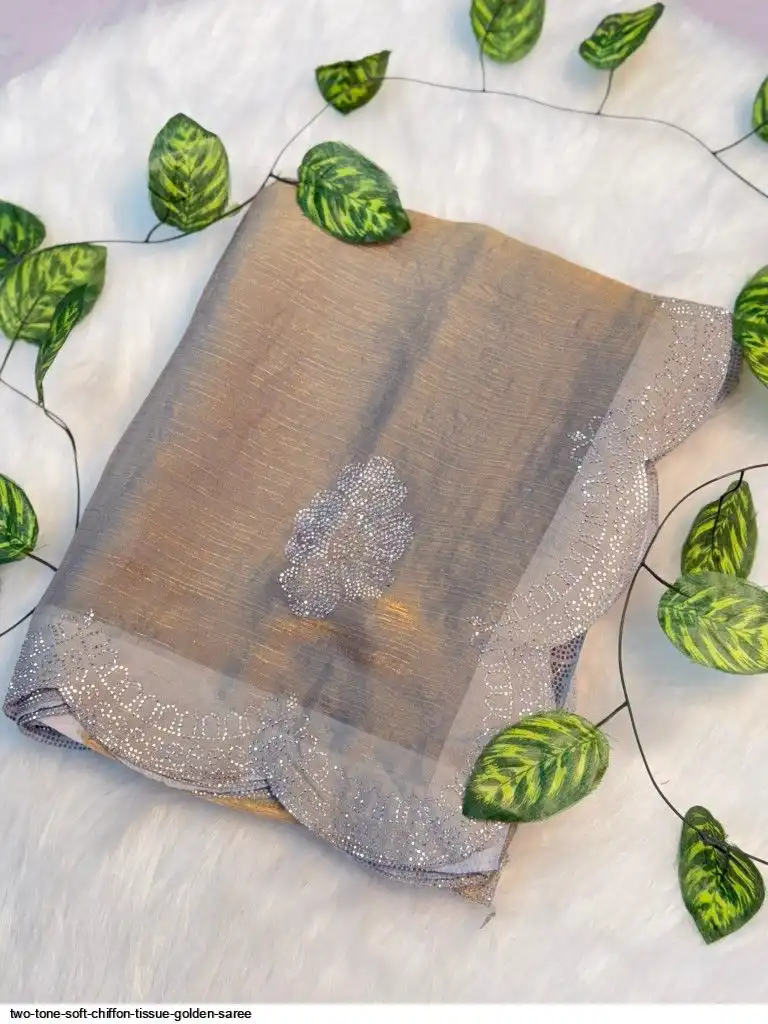 RICH TWO TONE SOFT CHIFFORN TISSUE GOLDEN SAREE