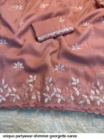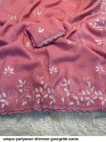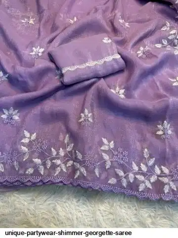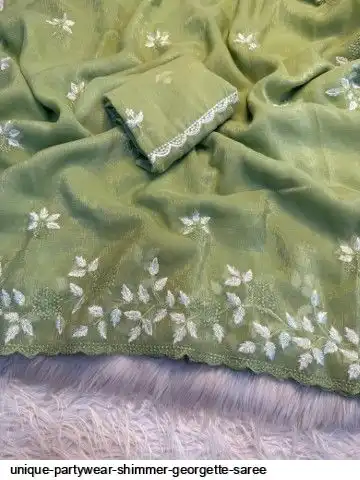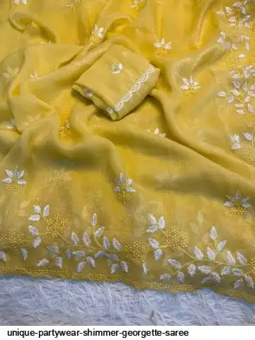 artywear Shimmer Georgette saree with beautiful white thread leaf work design