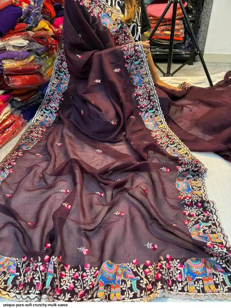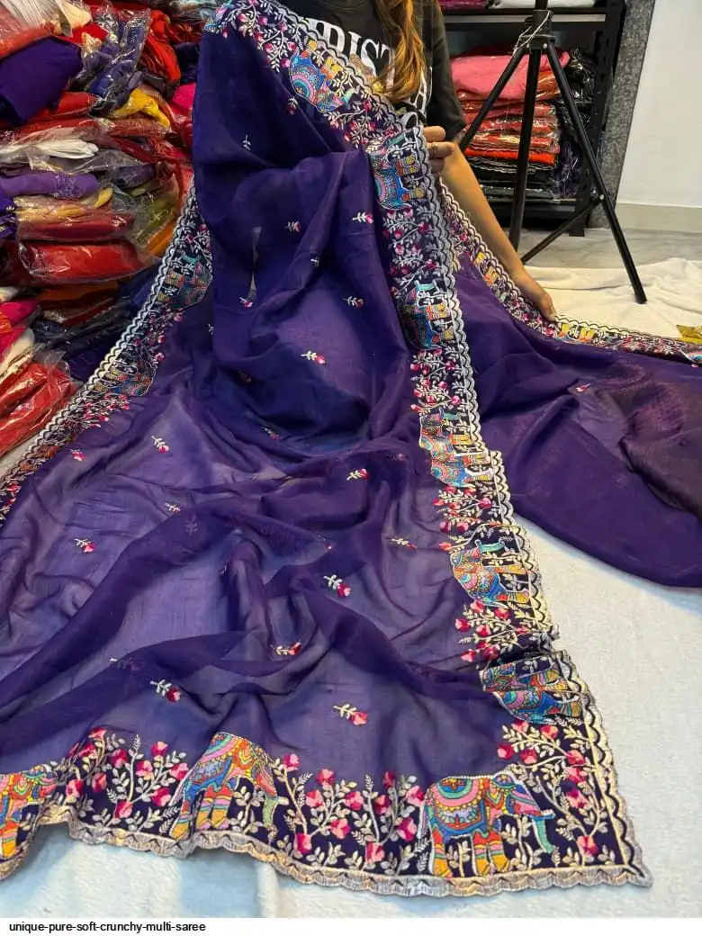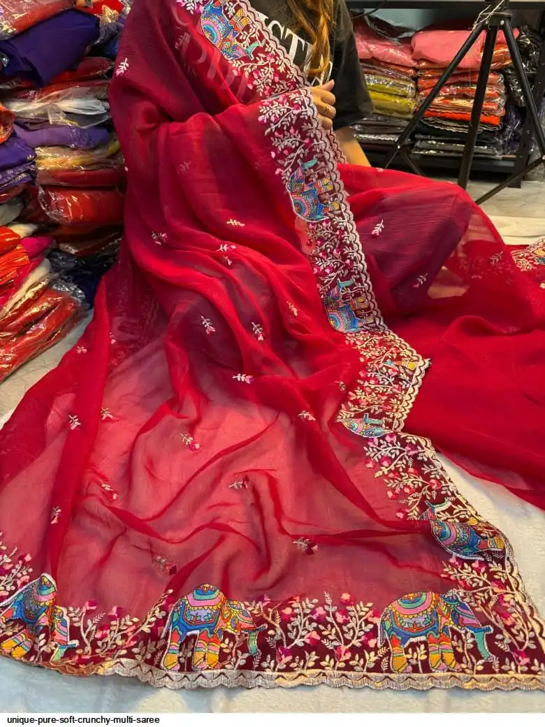 Pure soft crunchy Multi Emrodairy Full Worked Saree With matching embroidery work Blouse
