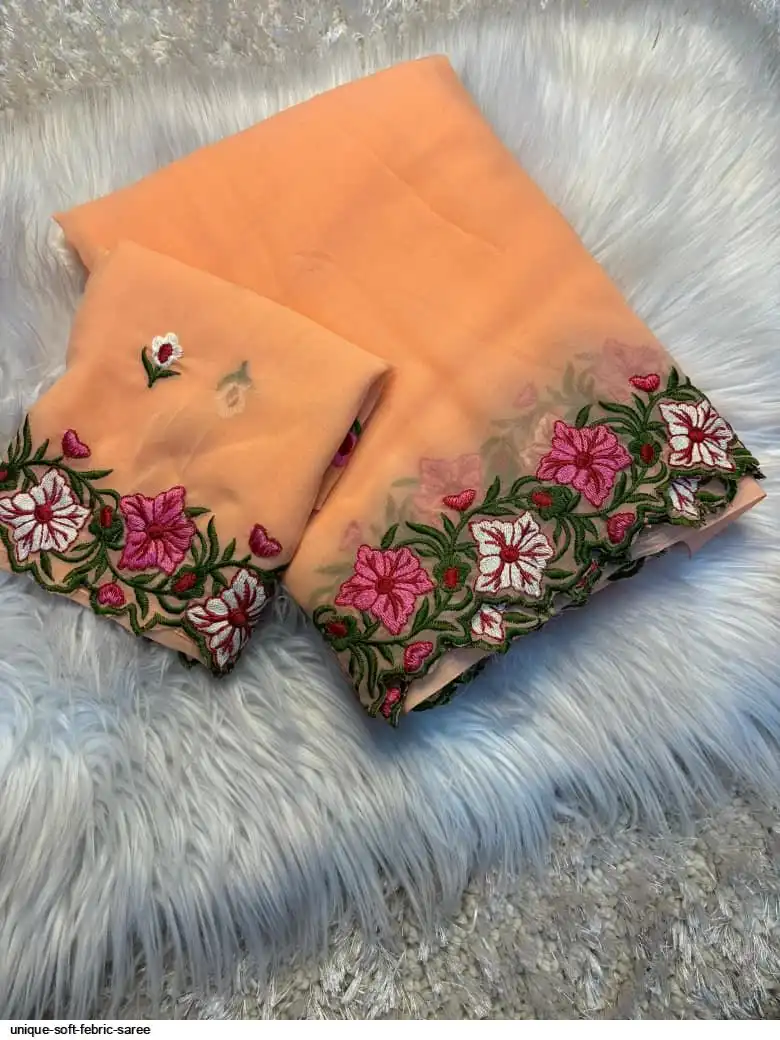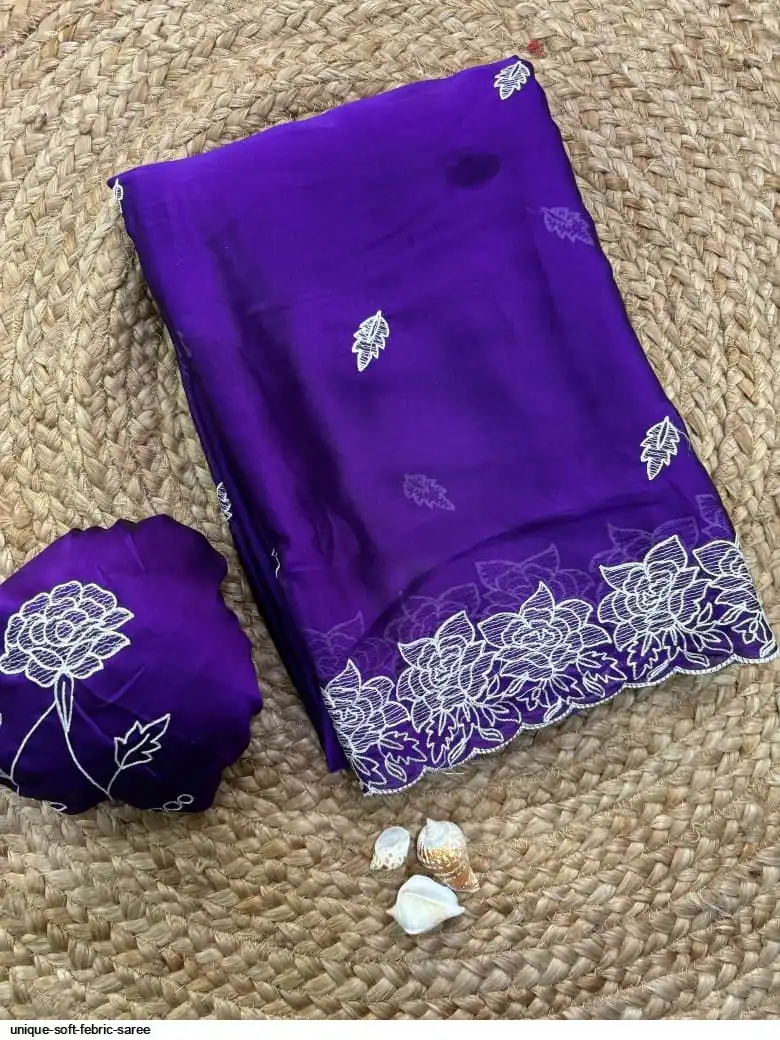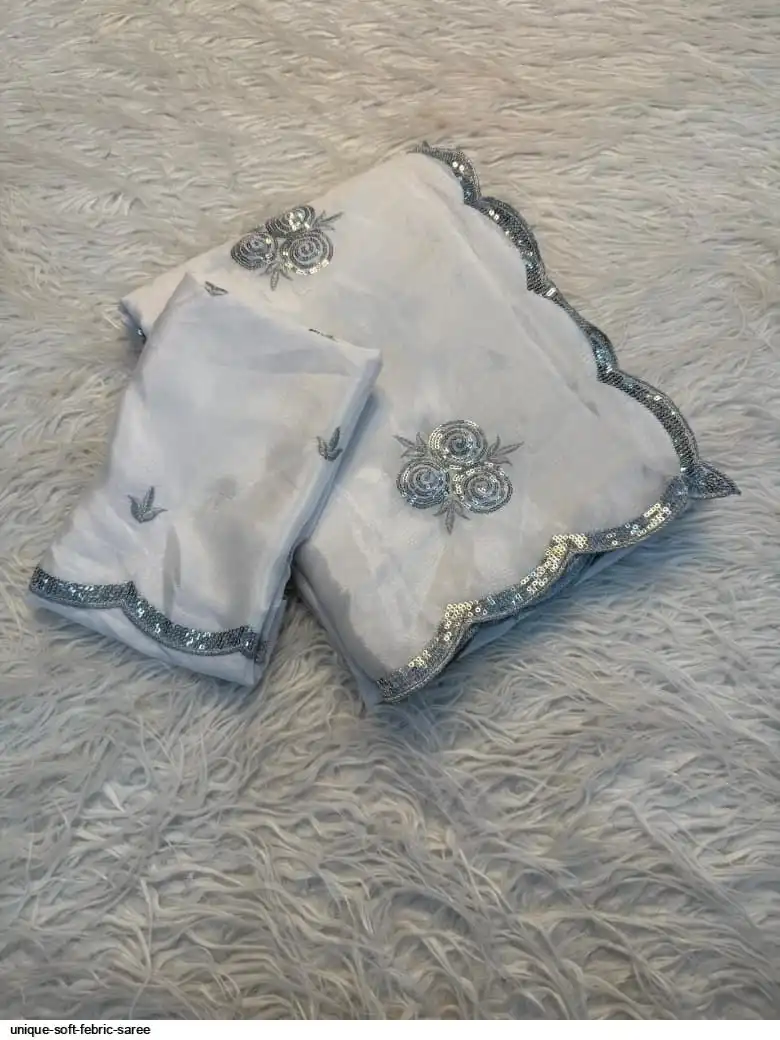 Soft febric saree with beautiful white therd embroidery work c pallu with embroidery work blouse