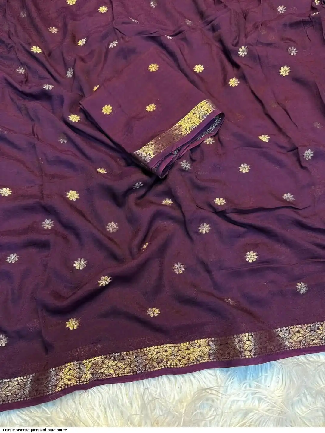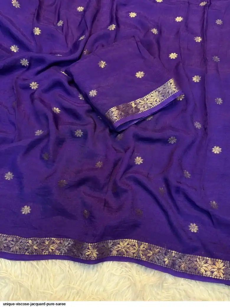 Pure viscose weaving jacquard saree with pure viscose matching blouse