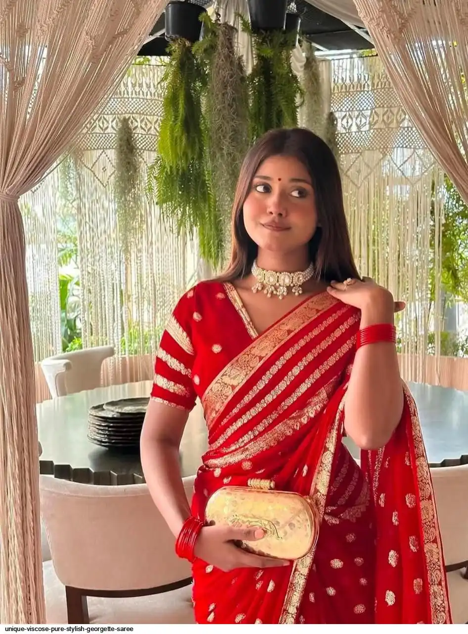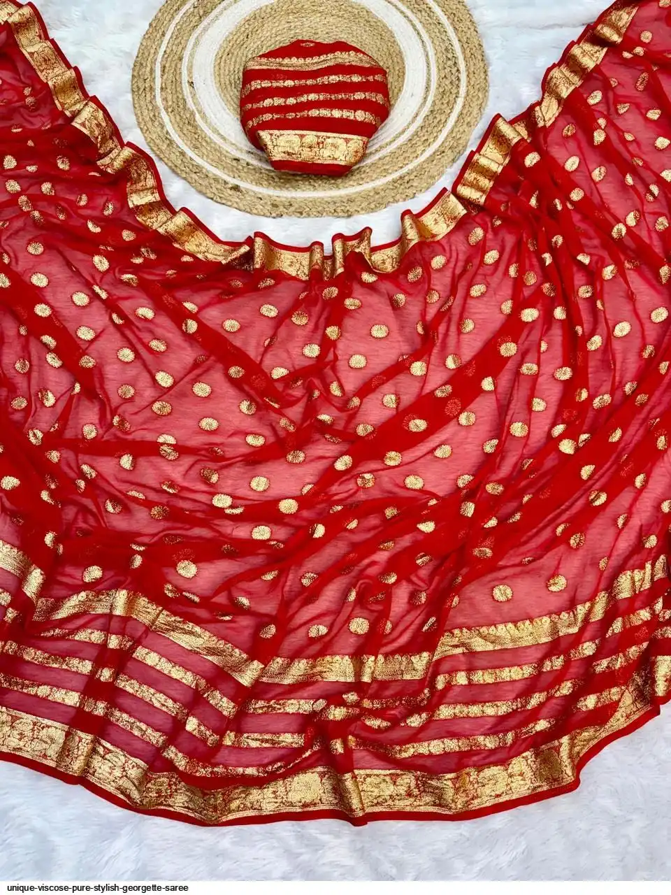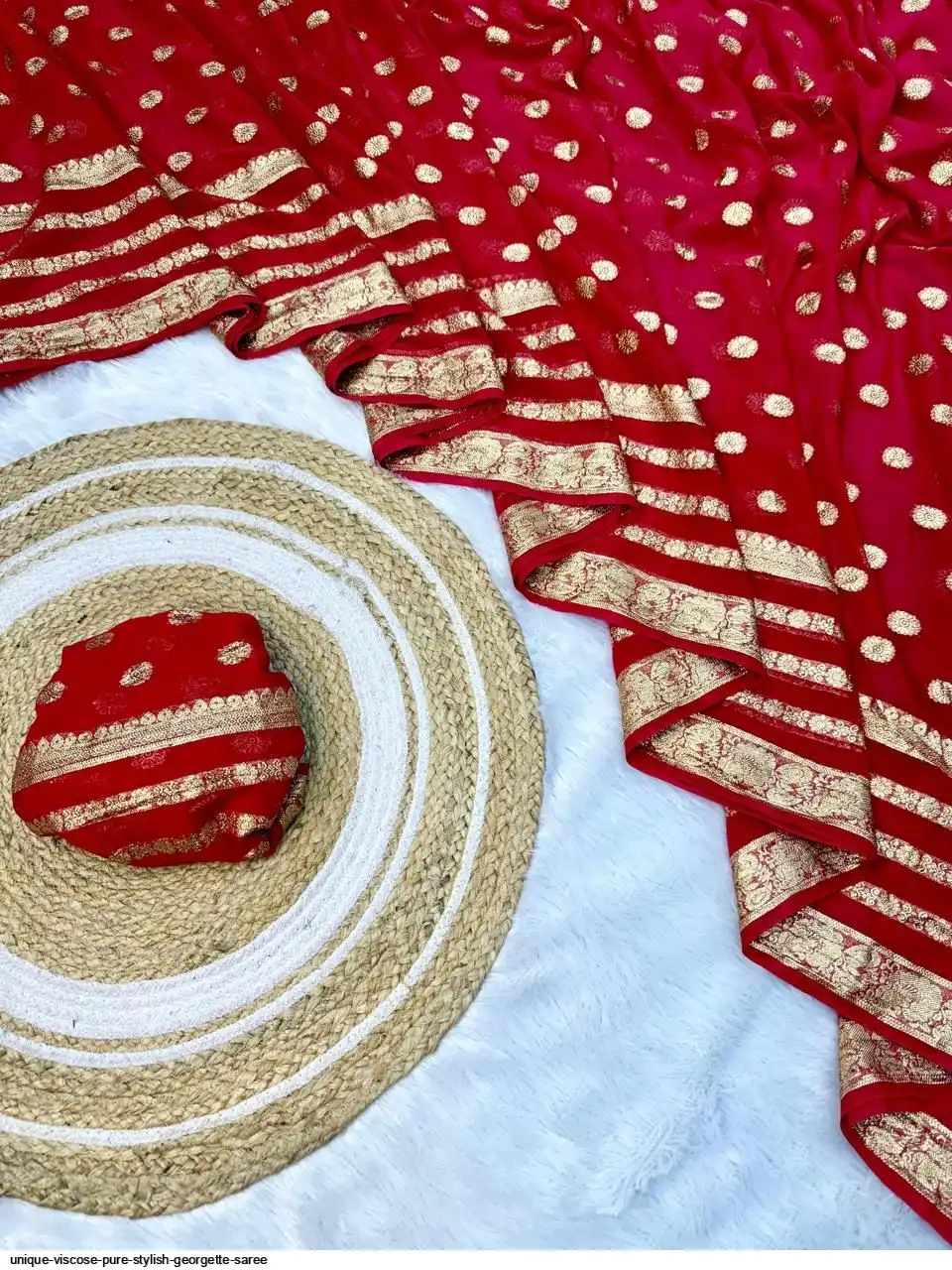 Viscose Weaving Georgette Saree With Pure Jacquard Zari Weaving Running Blouse
