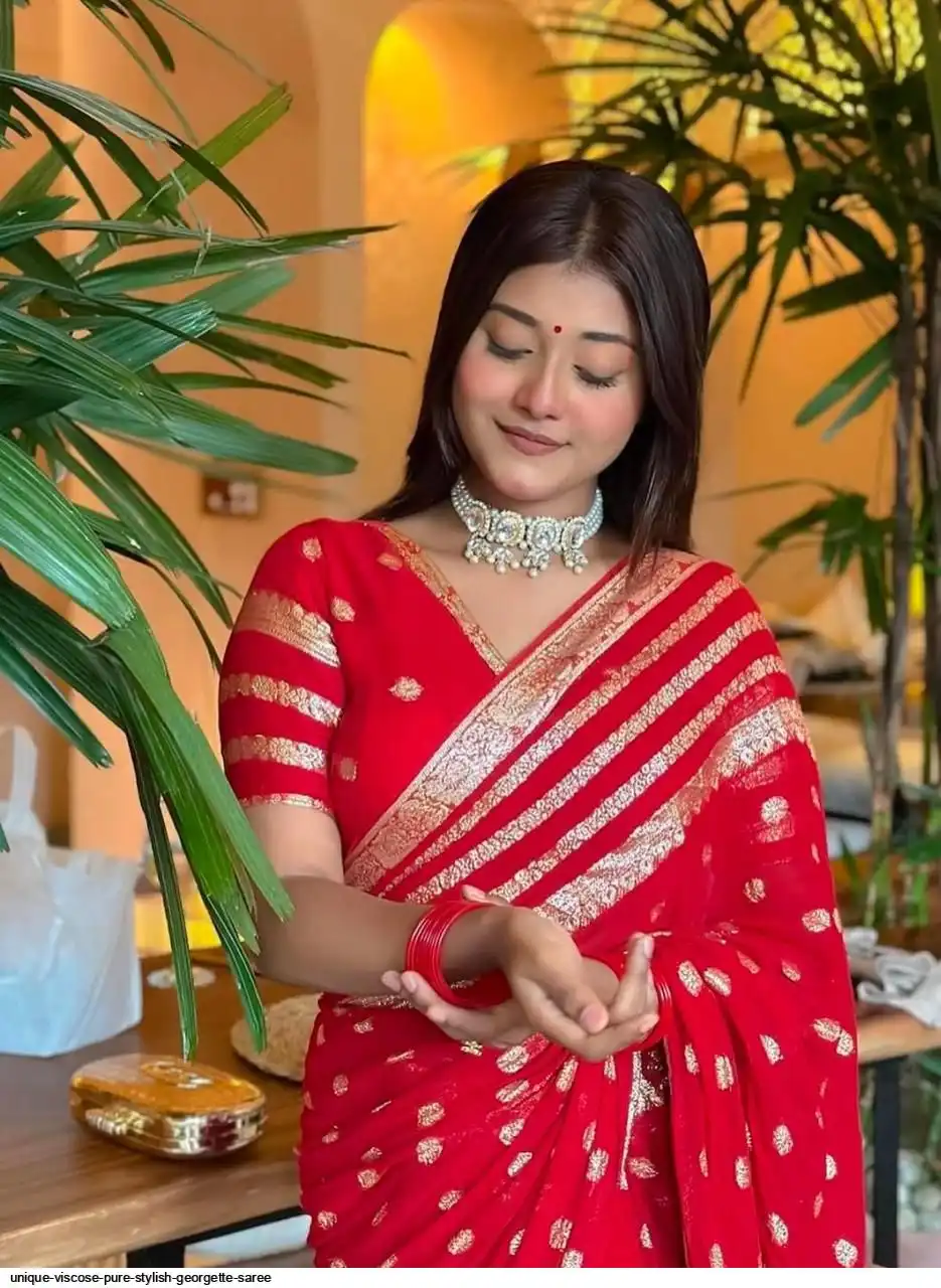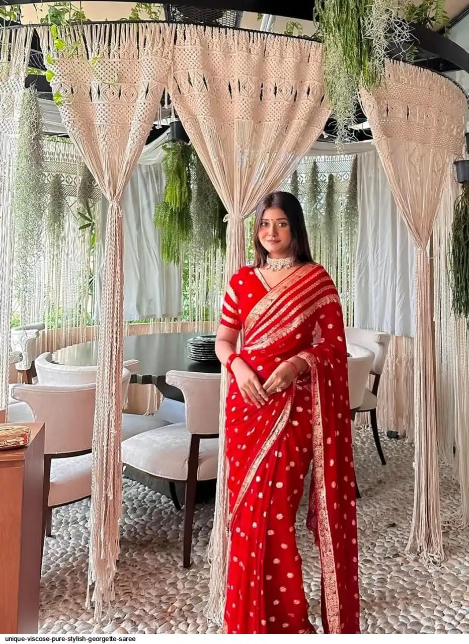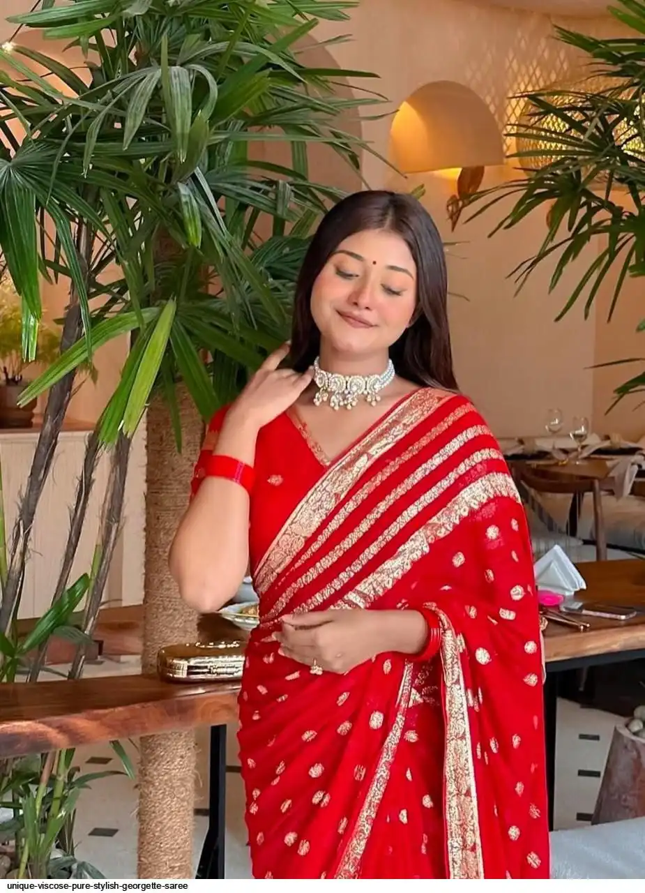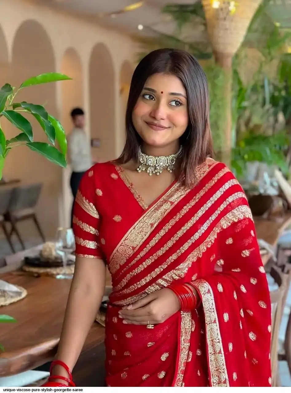 Viscose Weaving Georgette Saree With Pure Jacquard Zari Weaving Running Blouse