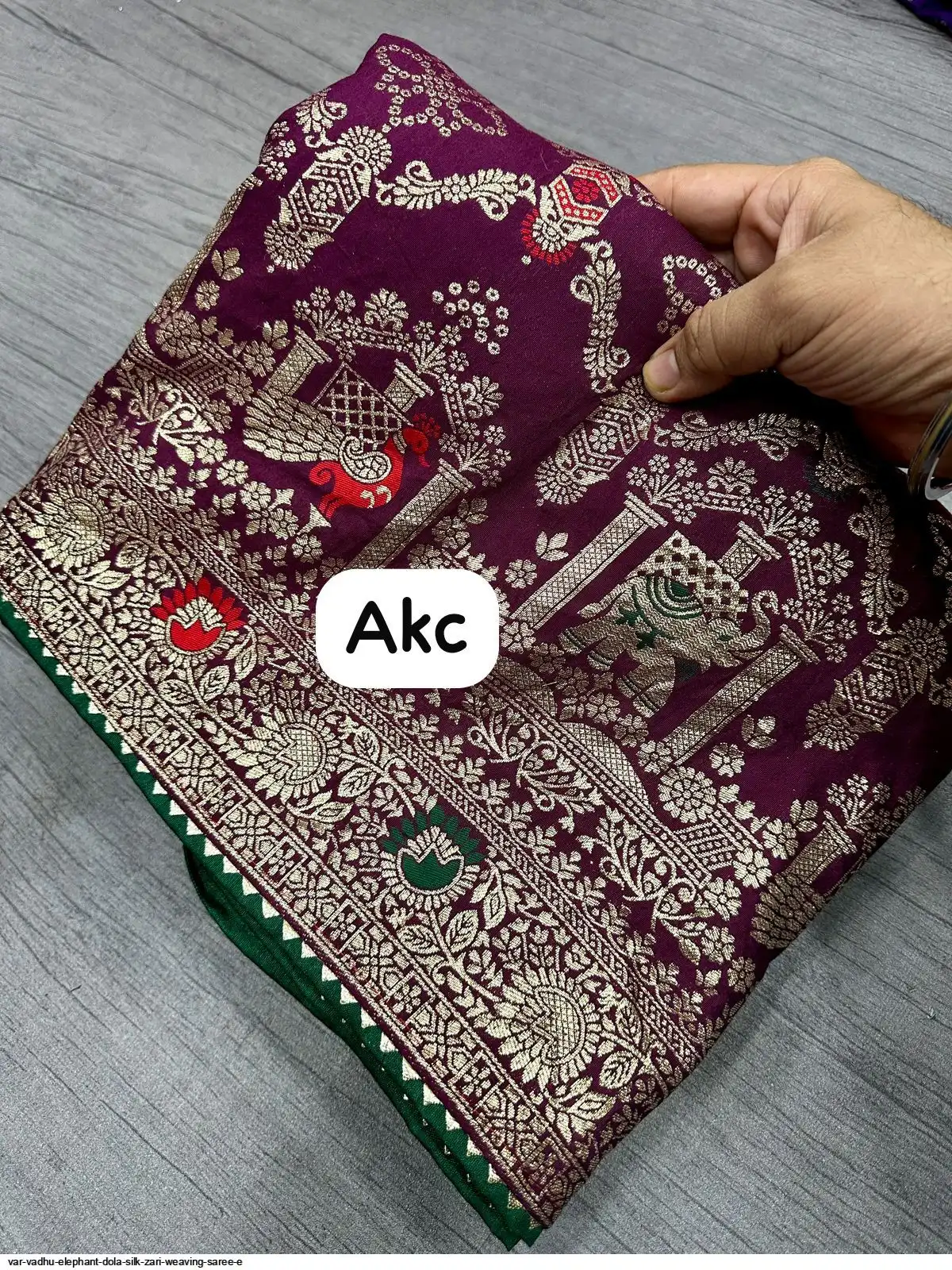 VAR VADHU ELEPHANT DOLA SILK ZARI WEAVING SAREE E