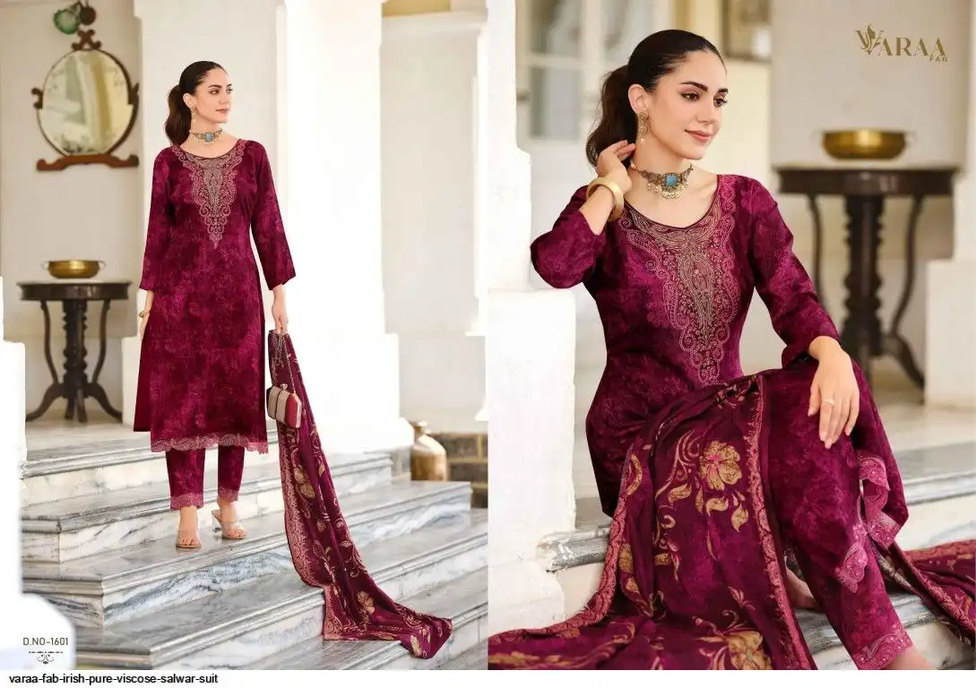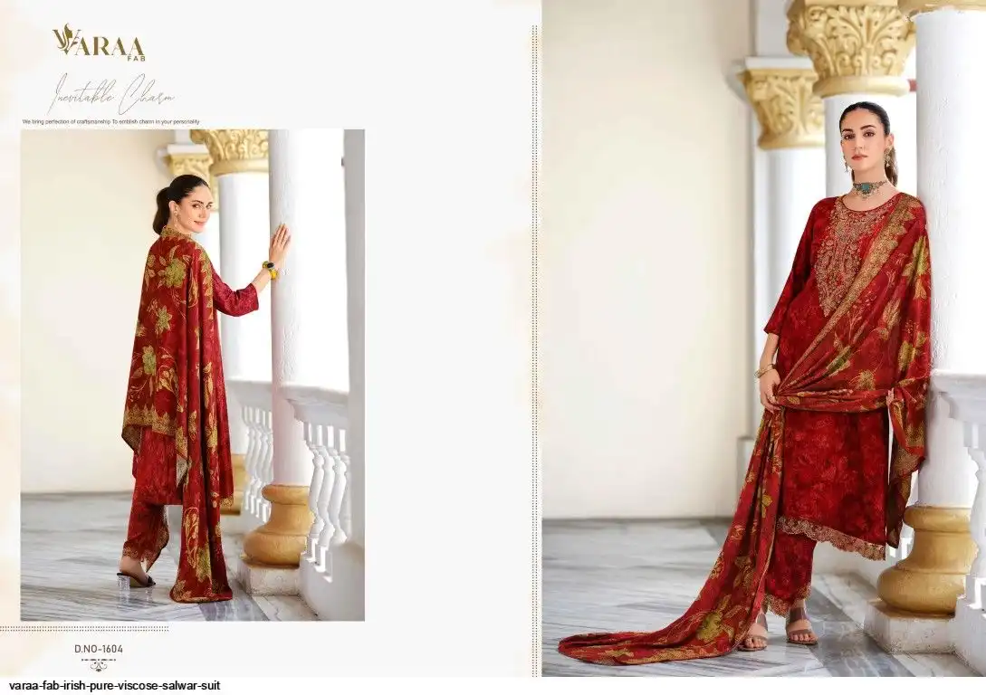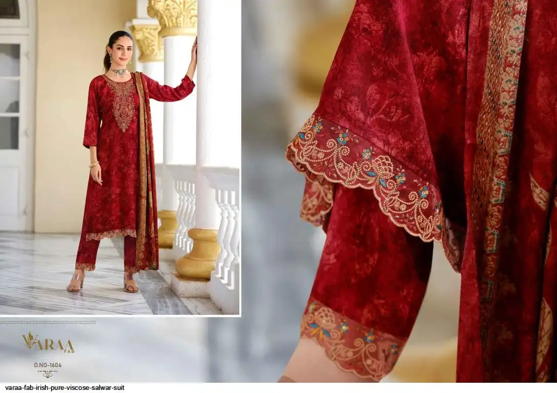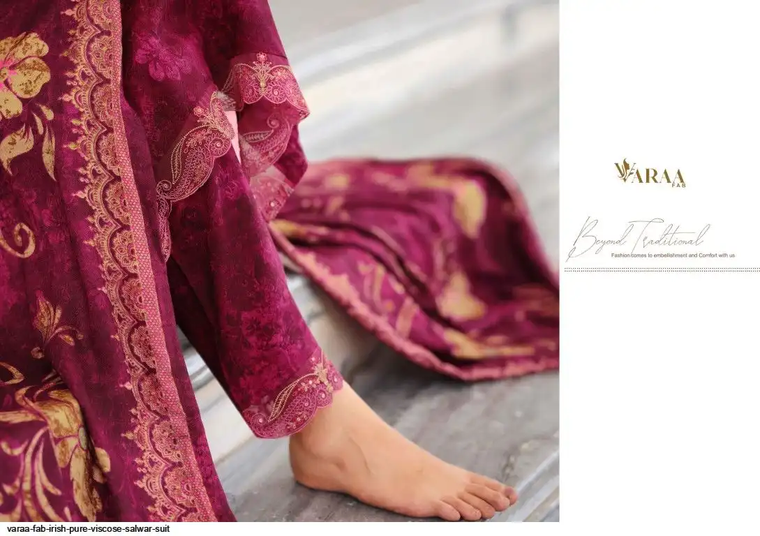 Top - PURE VISCOSE PASHMINA PRINT WITH HEAVY DESIGNER EMBROIDERY AND LACE