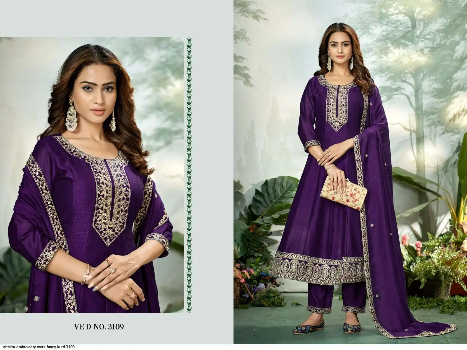 VICHITRA EMBROIDERY WORK FANCY KURTI 3109