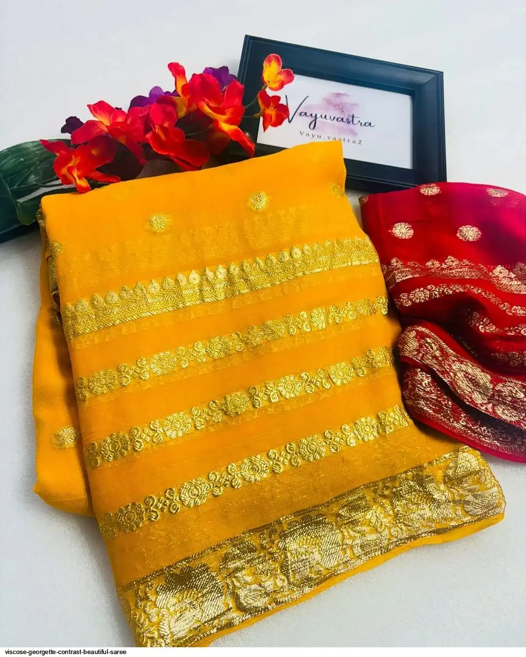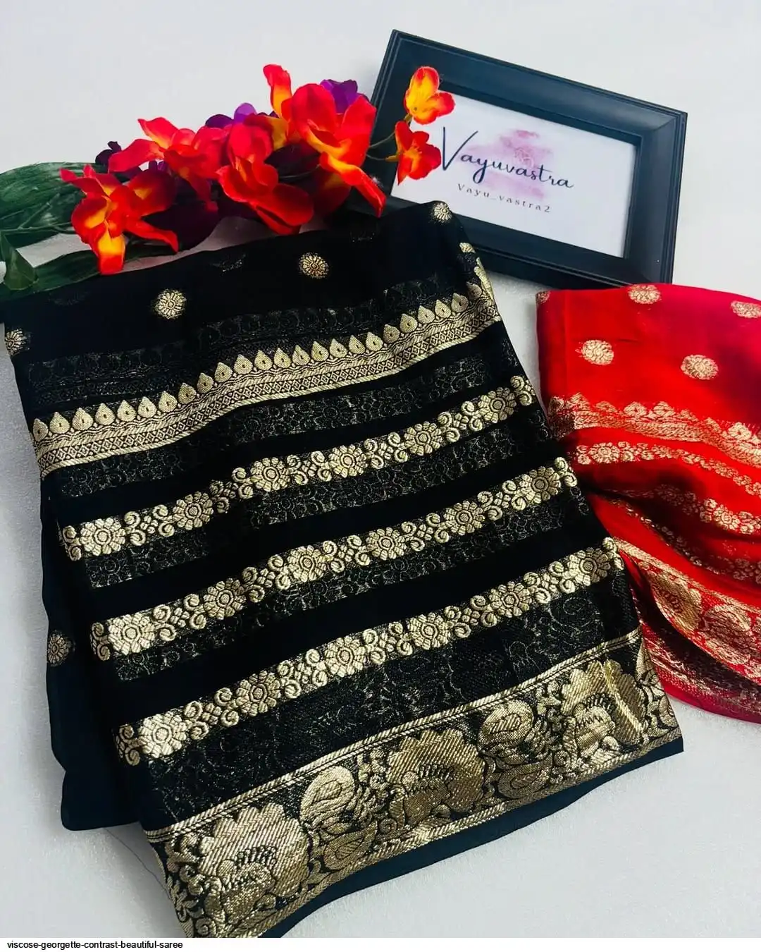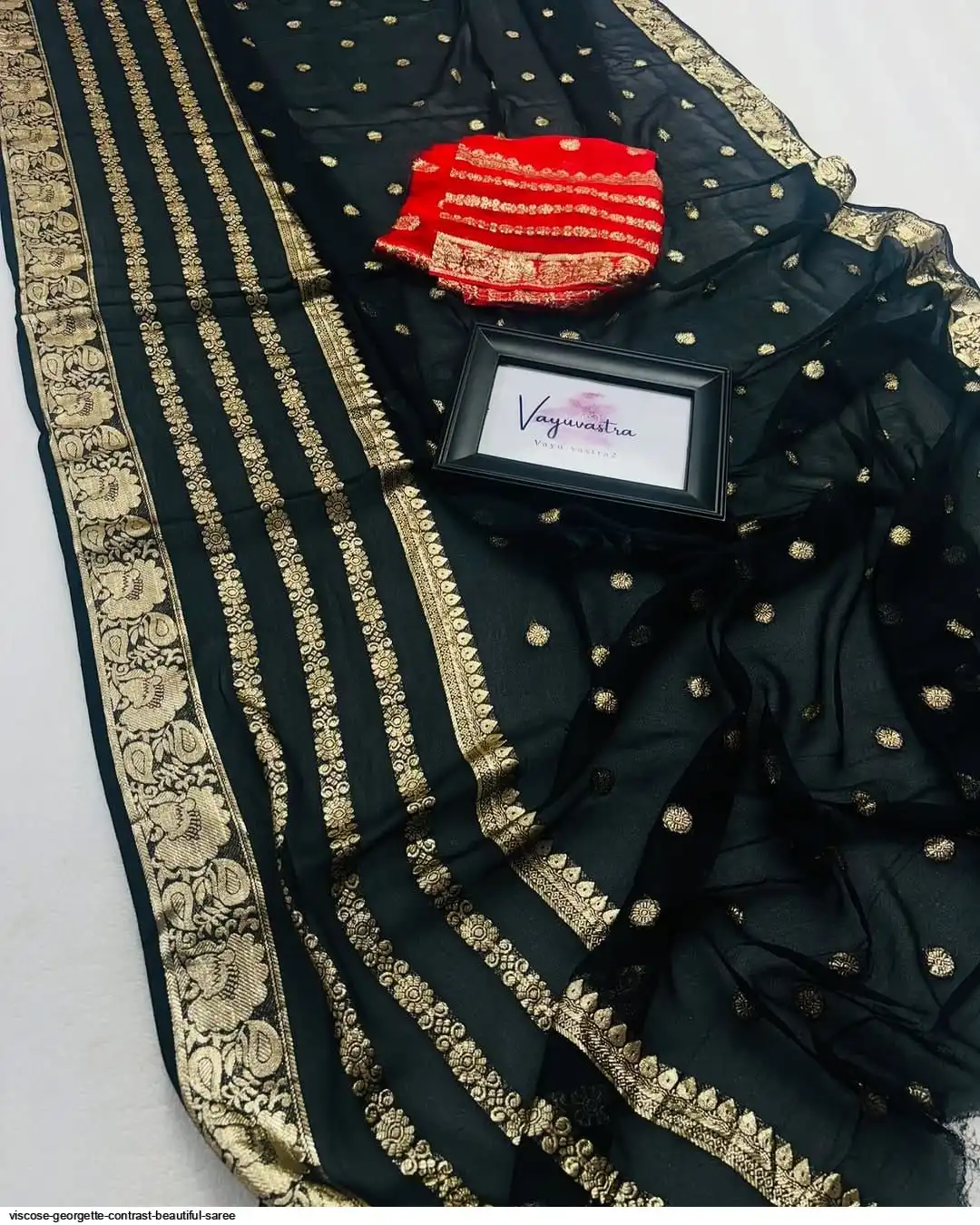 Viscose Georgette Saree With Contrast viscose georgette blouse