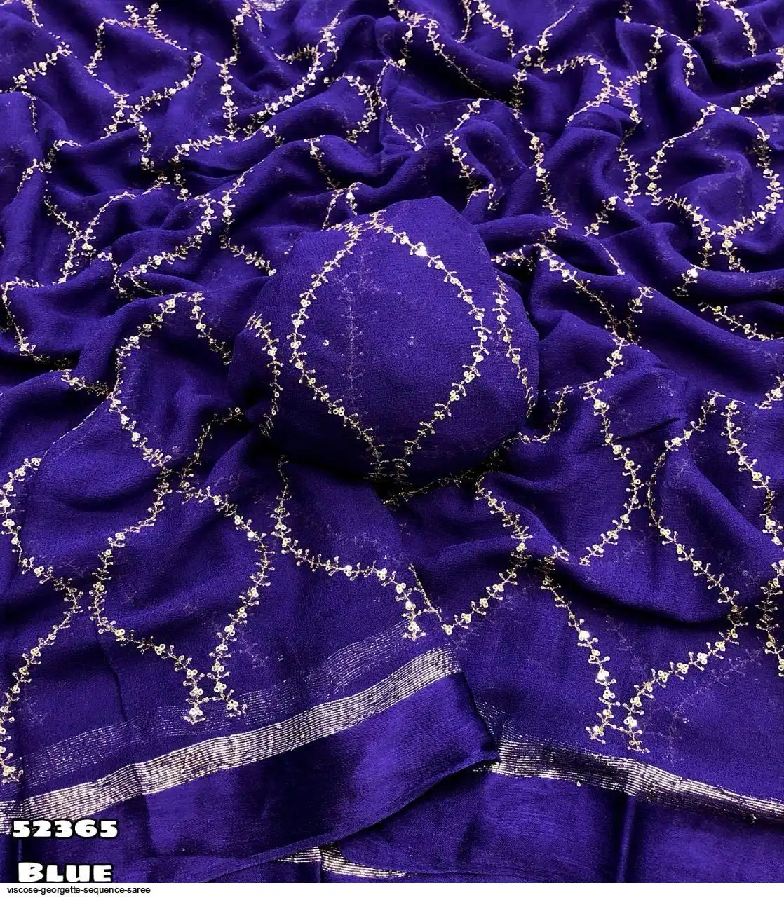 Viscose Georgette Multi Sequence Full Emrodairy Work Saree With Running Blouse