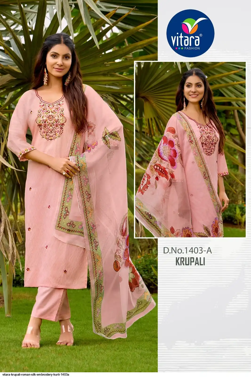 VITARA KRUPALI ROMAN SILK EMBROIDERY KURTI 1403A