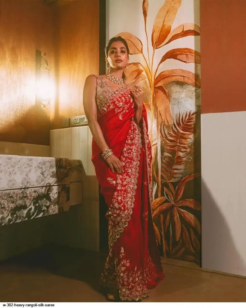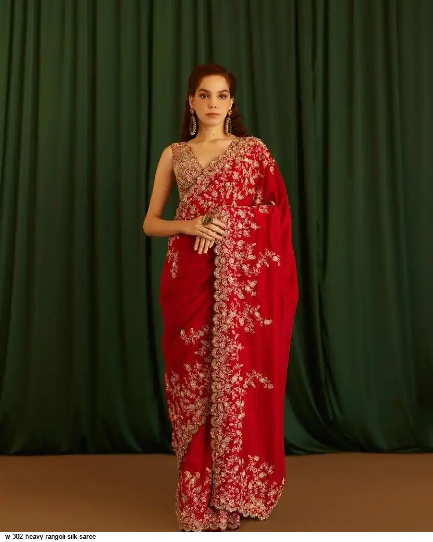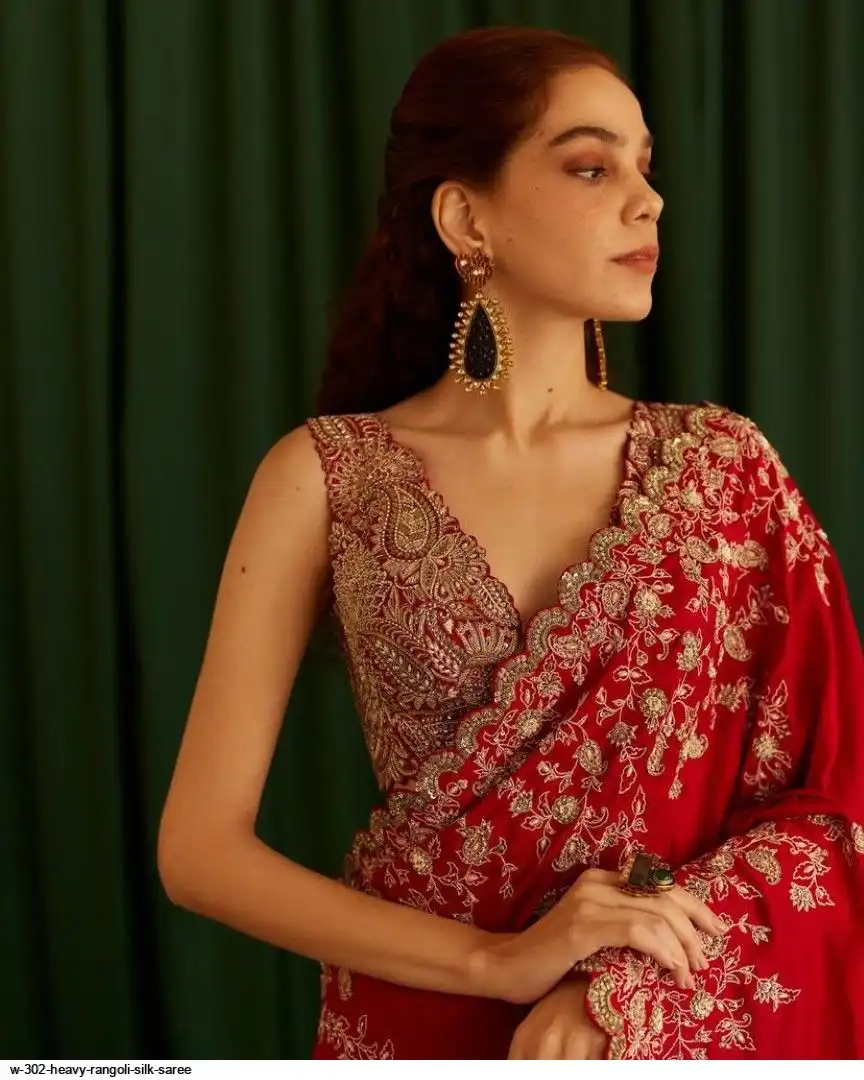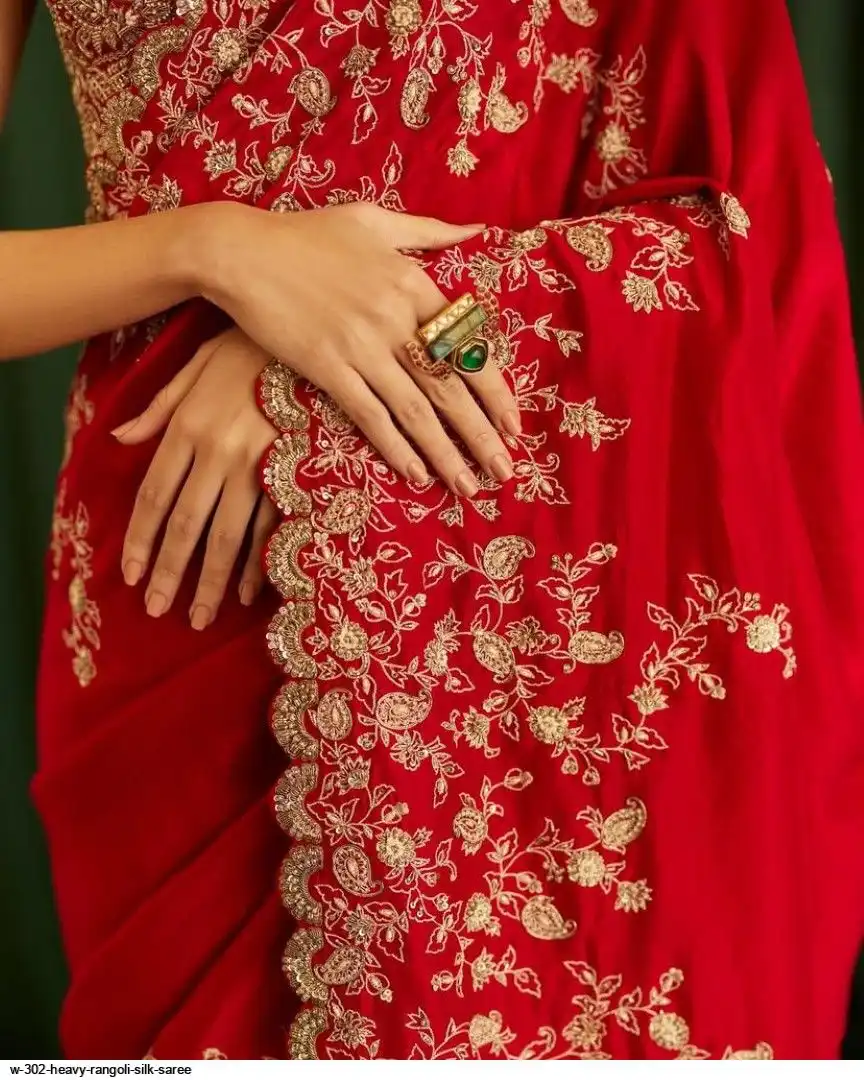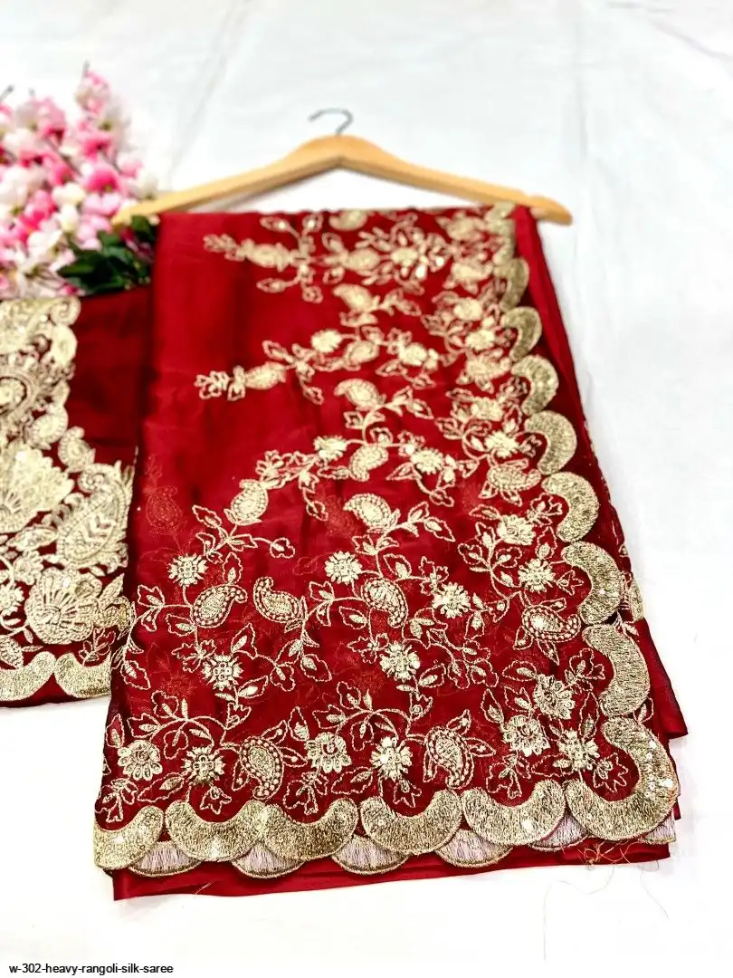 SAREE :- Heavy Rangoli Silk With Beautiful Zari + 3 M.M Sequence Embroidery Work And C-Pallu Cutwork