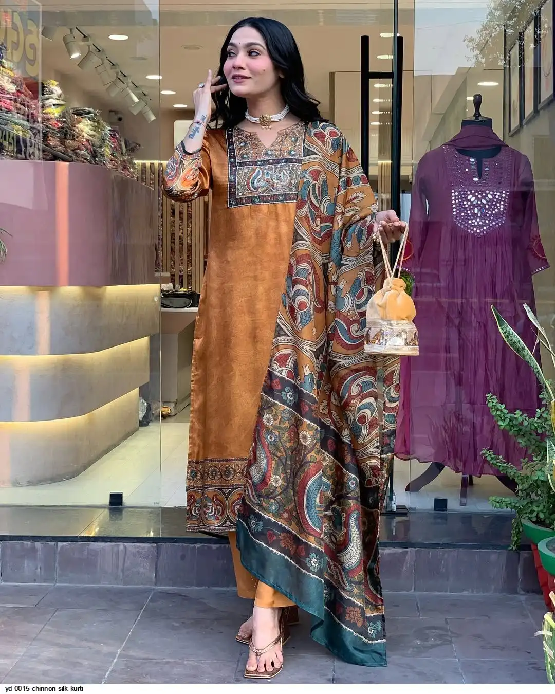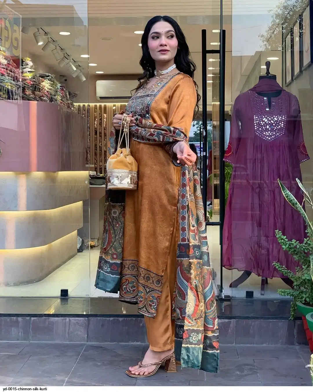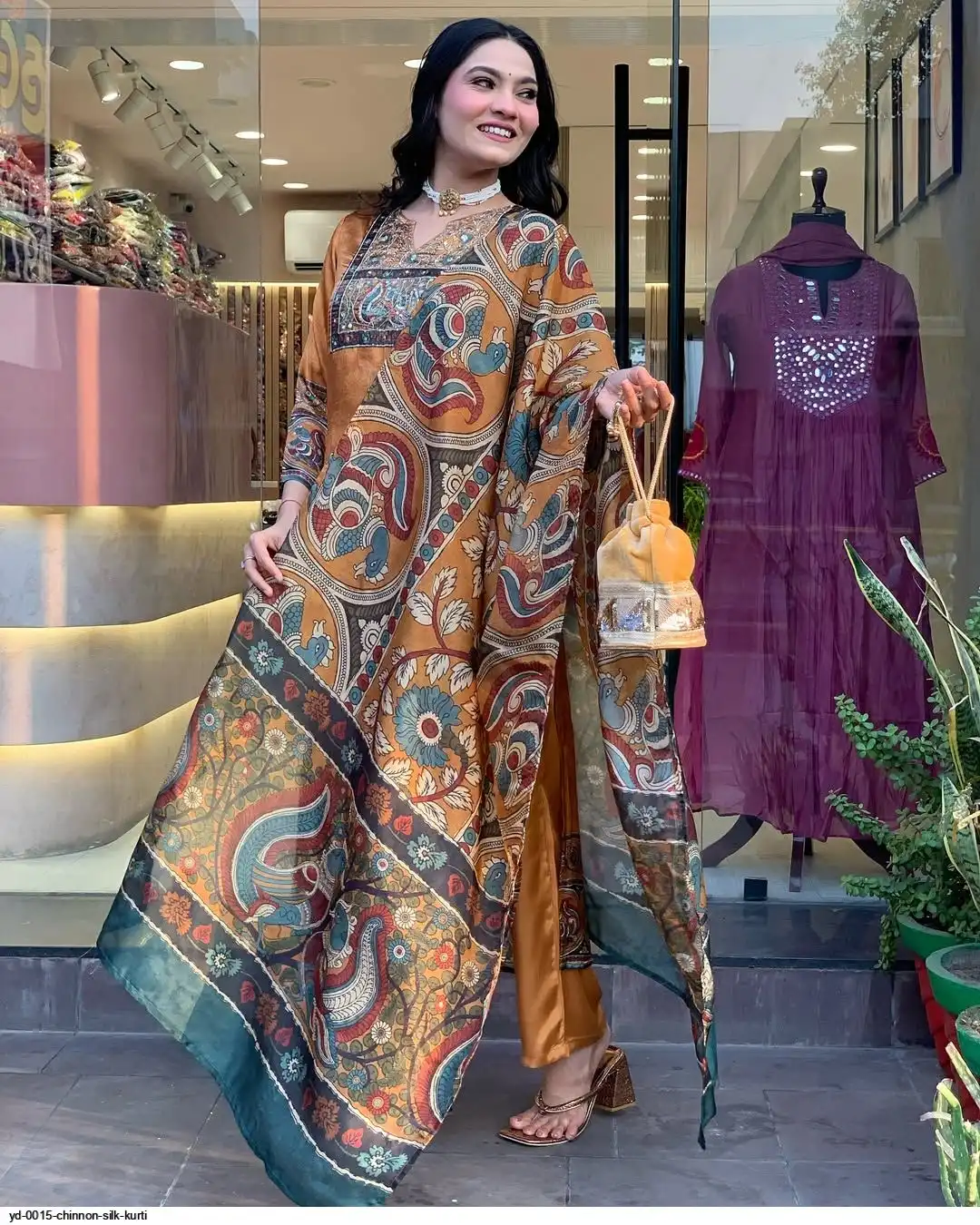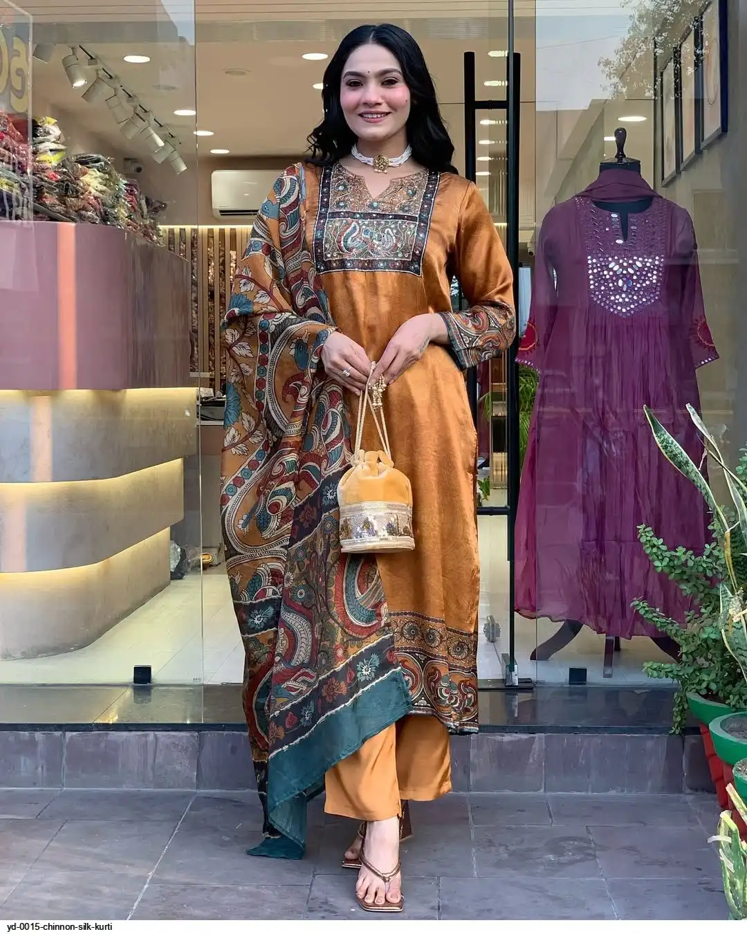 today We are Launching Exclusively Festive & Party Wear Pure Chinnon With Heavy Digital Print With Real Mirror And Demand Hand Work Top-Bottom And Dupatta Set Fully Stitched Ready To Wear