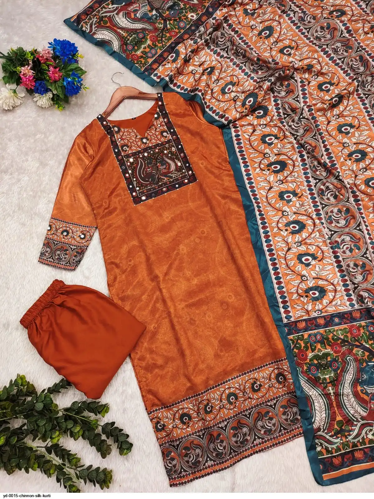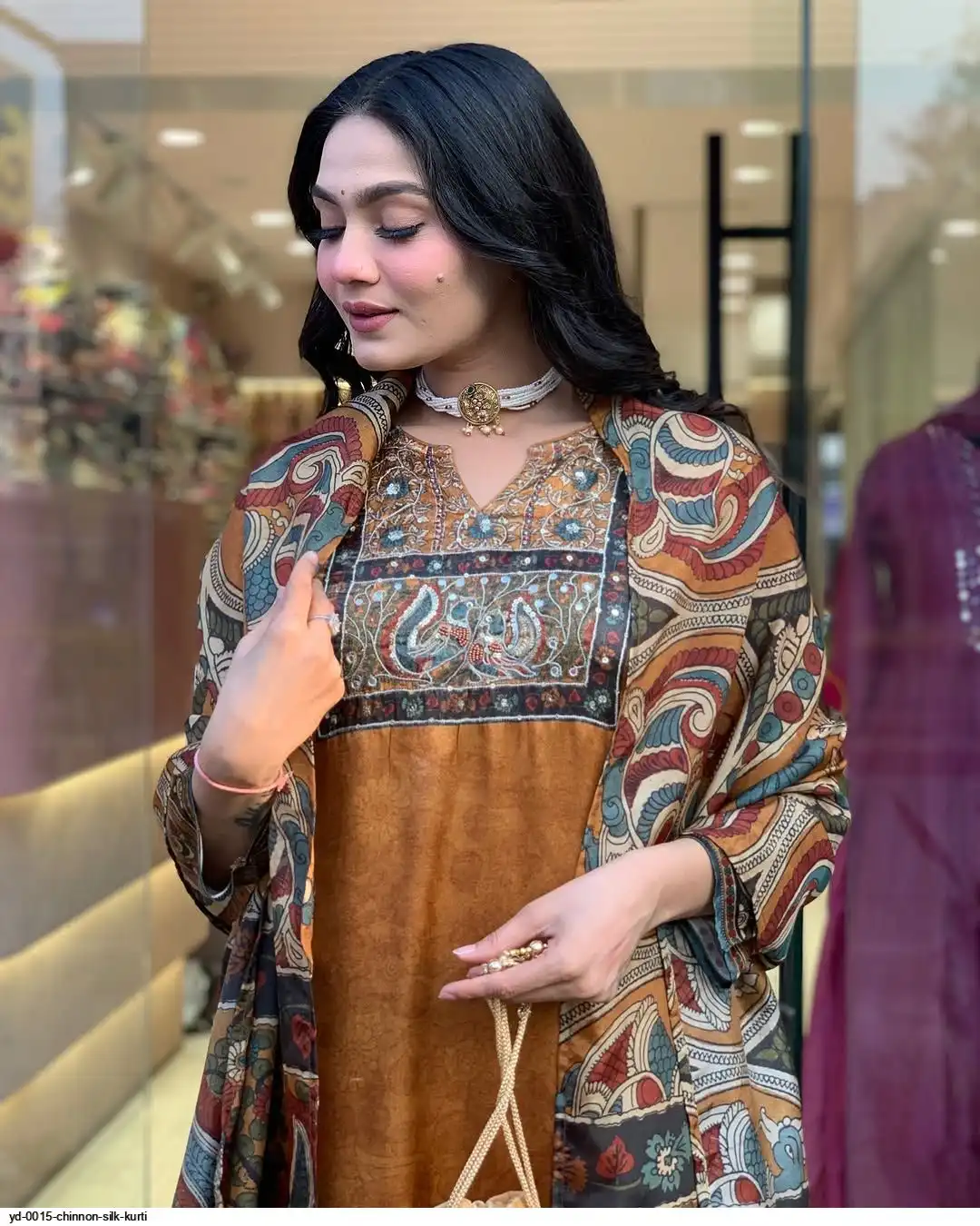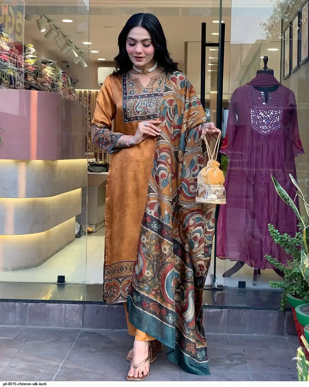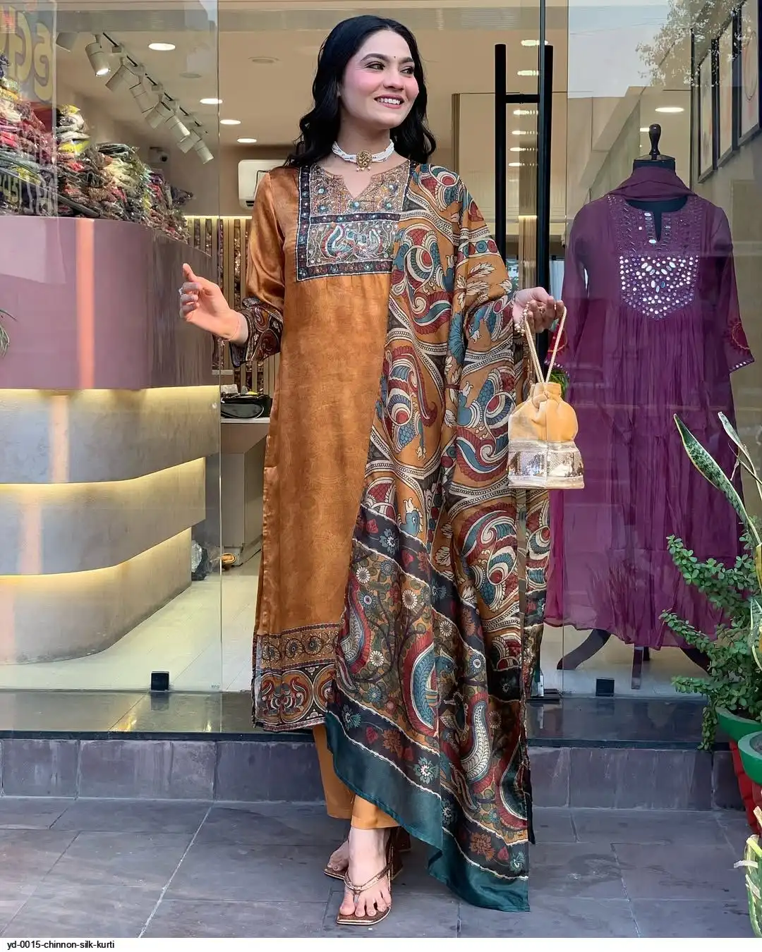 today We are Launching Exclusively Festive & Party Wear Pure Chinnon With Heavy Digital Print With Real Mirror And Demand Hand Work Top-Bottom And Dupatta Set Fully Stitched Ready To Wear