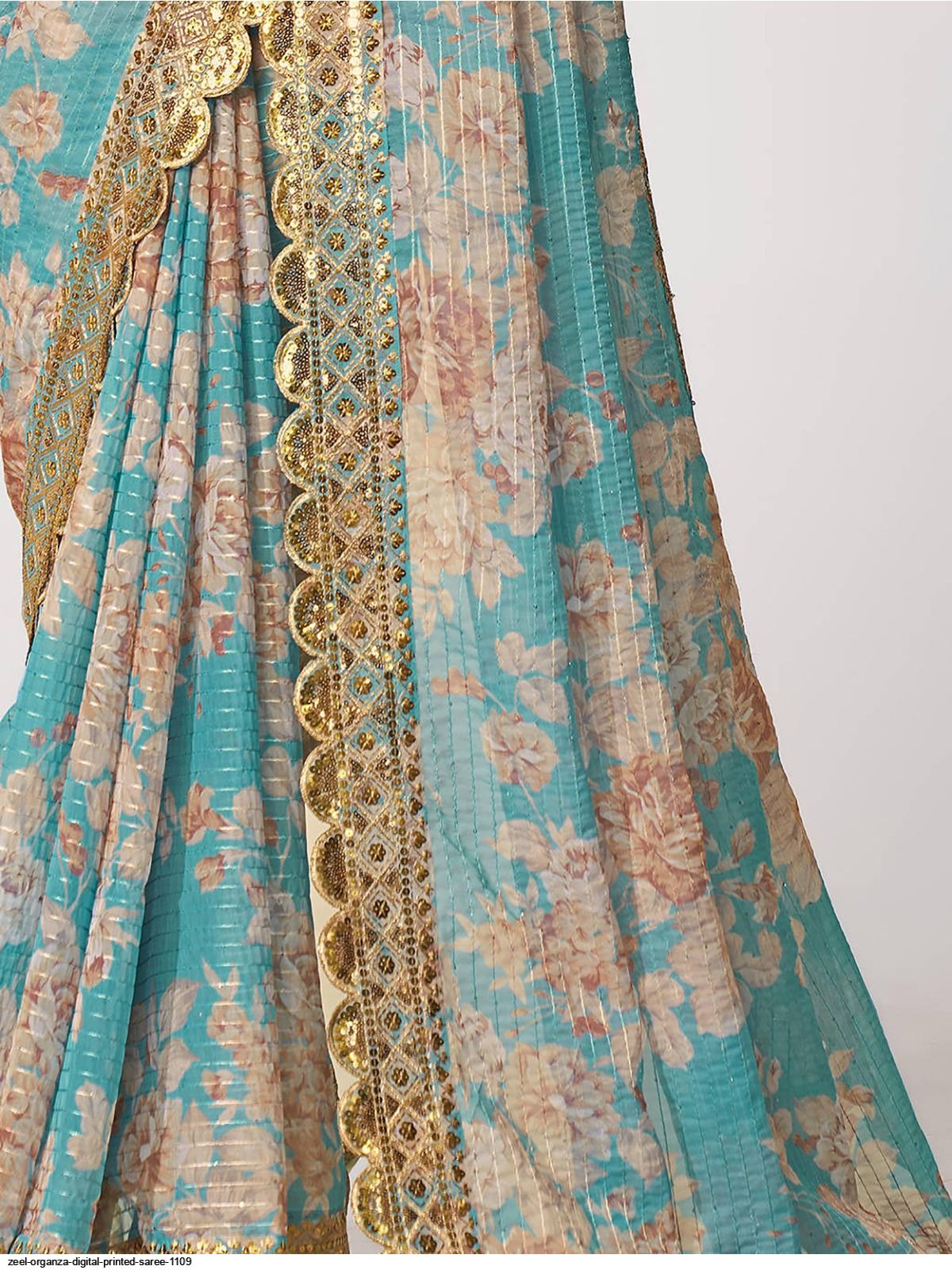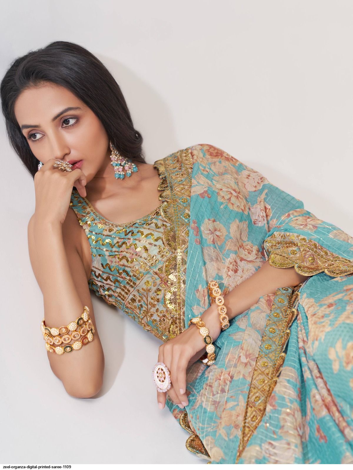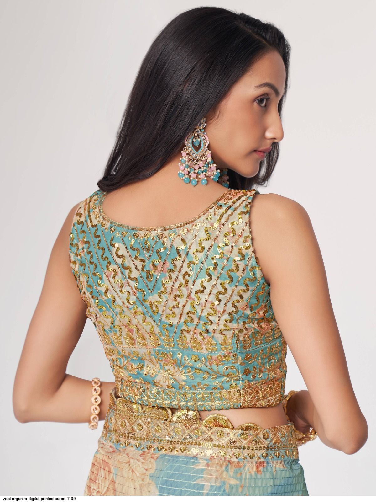 Work: Multiple Sequins Embroidery with Digital Floral Print