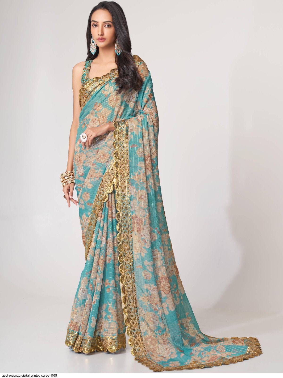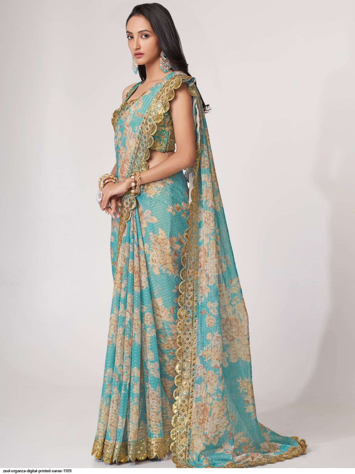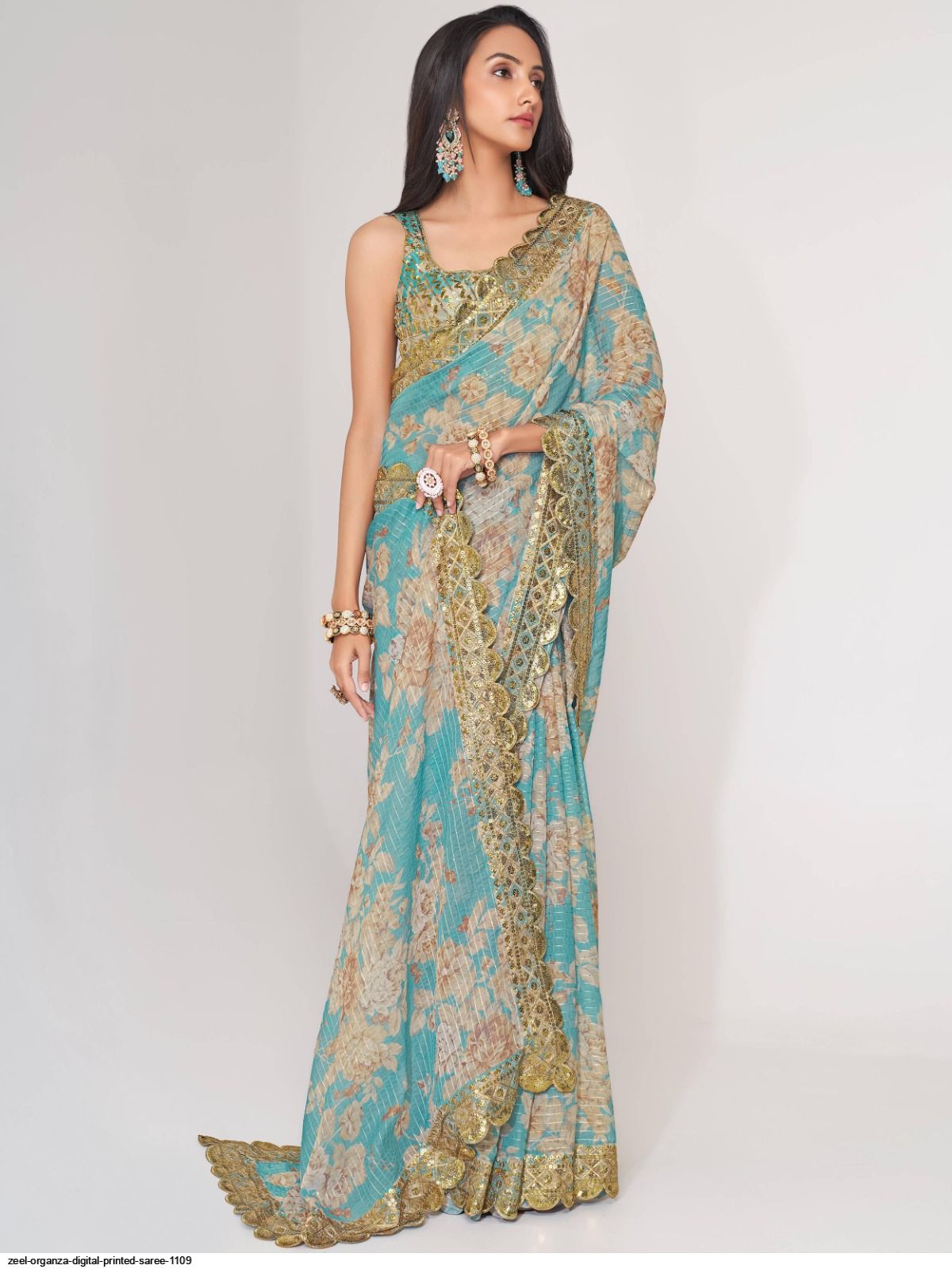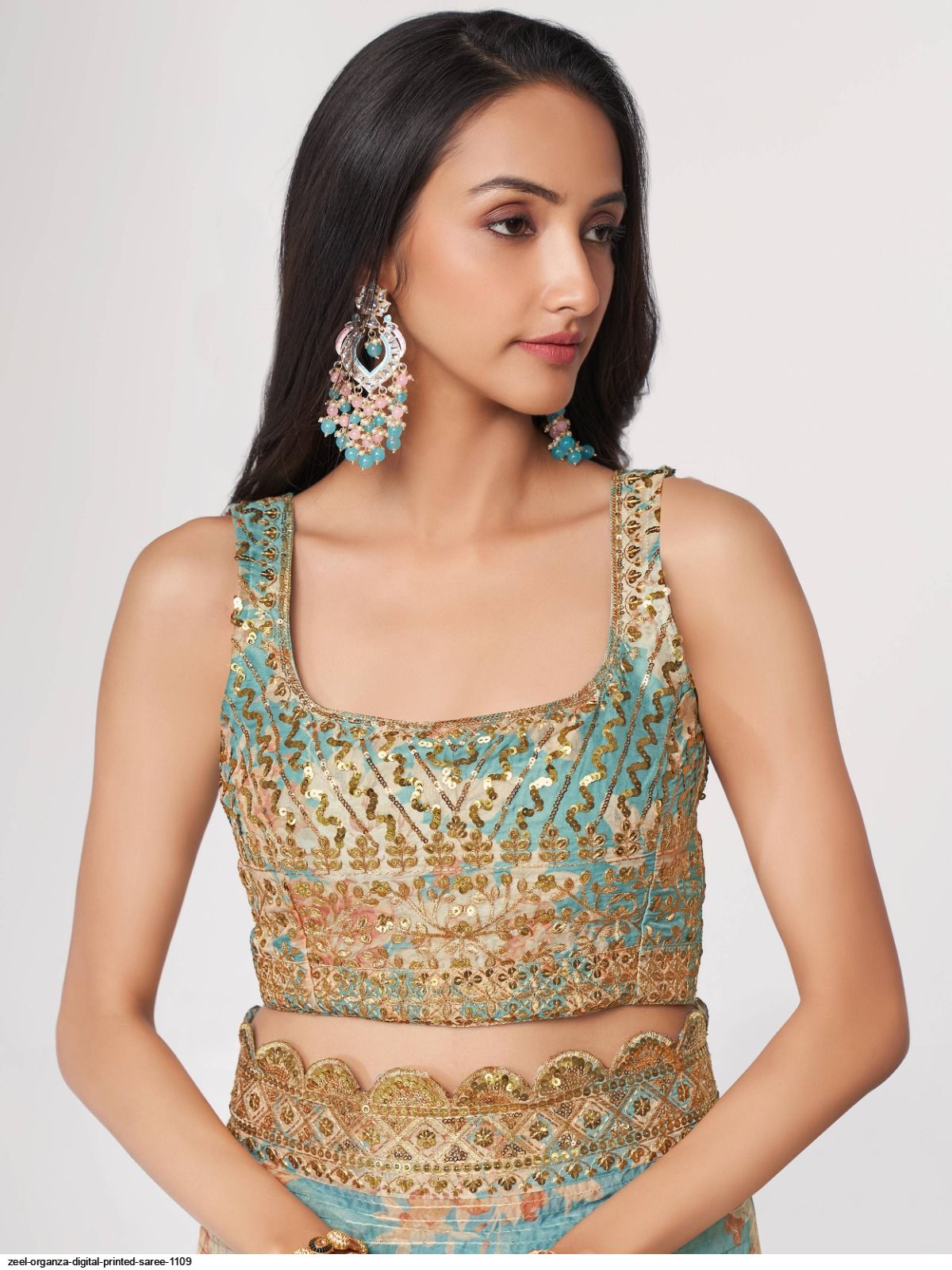Work: Multiple Sequins Embroidery with Digital Floral Print