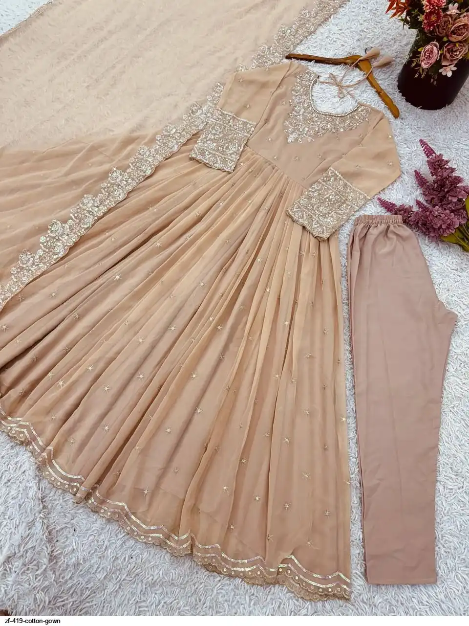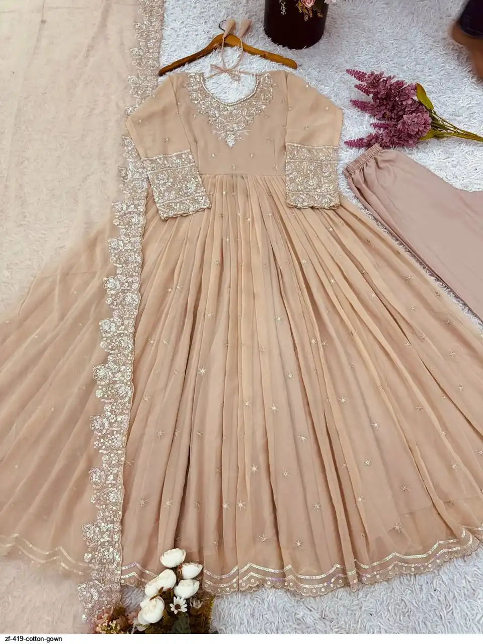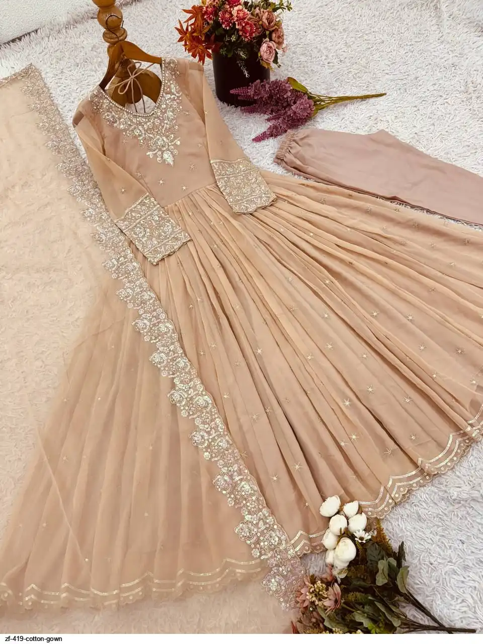 *Launching New Designer Party Wear Look Full Heavy Embroidery Rembo Sequence Work Gown With Fully Stiched and Dupatta Ready to Wear Collection*