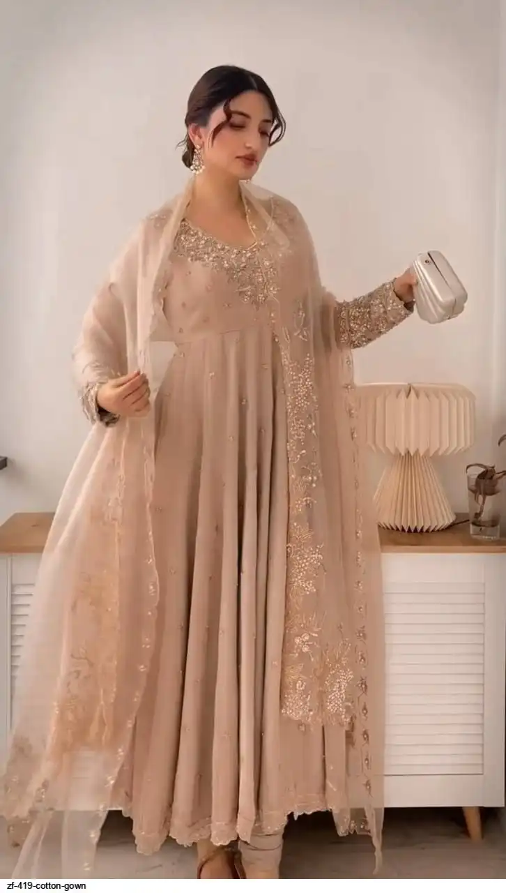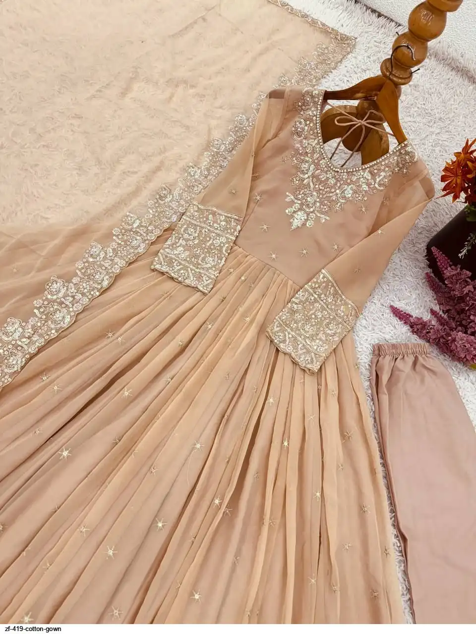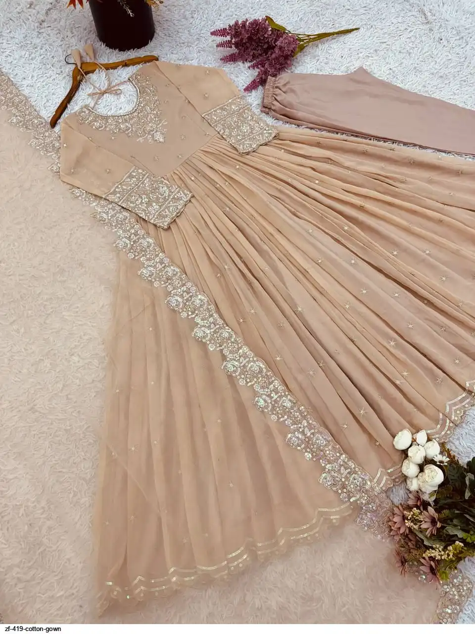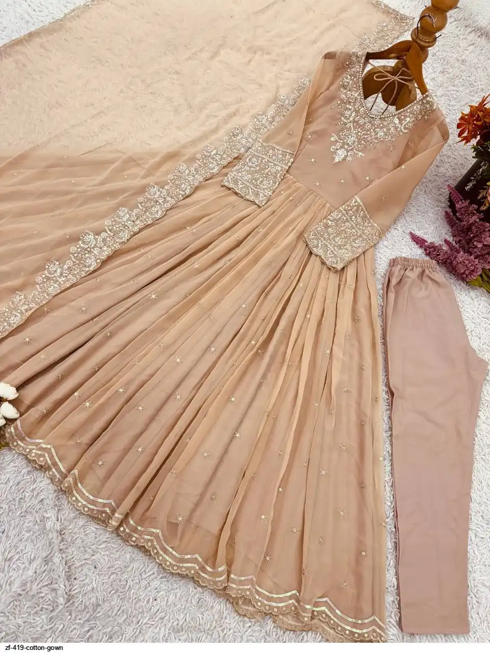 *Launching New Designer Party Wear Look Full Heavy Embroidery Rembo Sequence Work Gown With Fully Stiched and Dupatta Ready to Wear Collection*