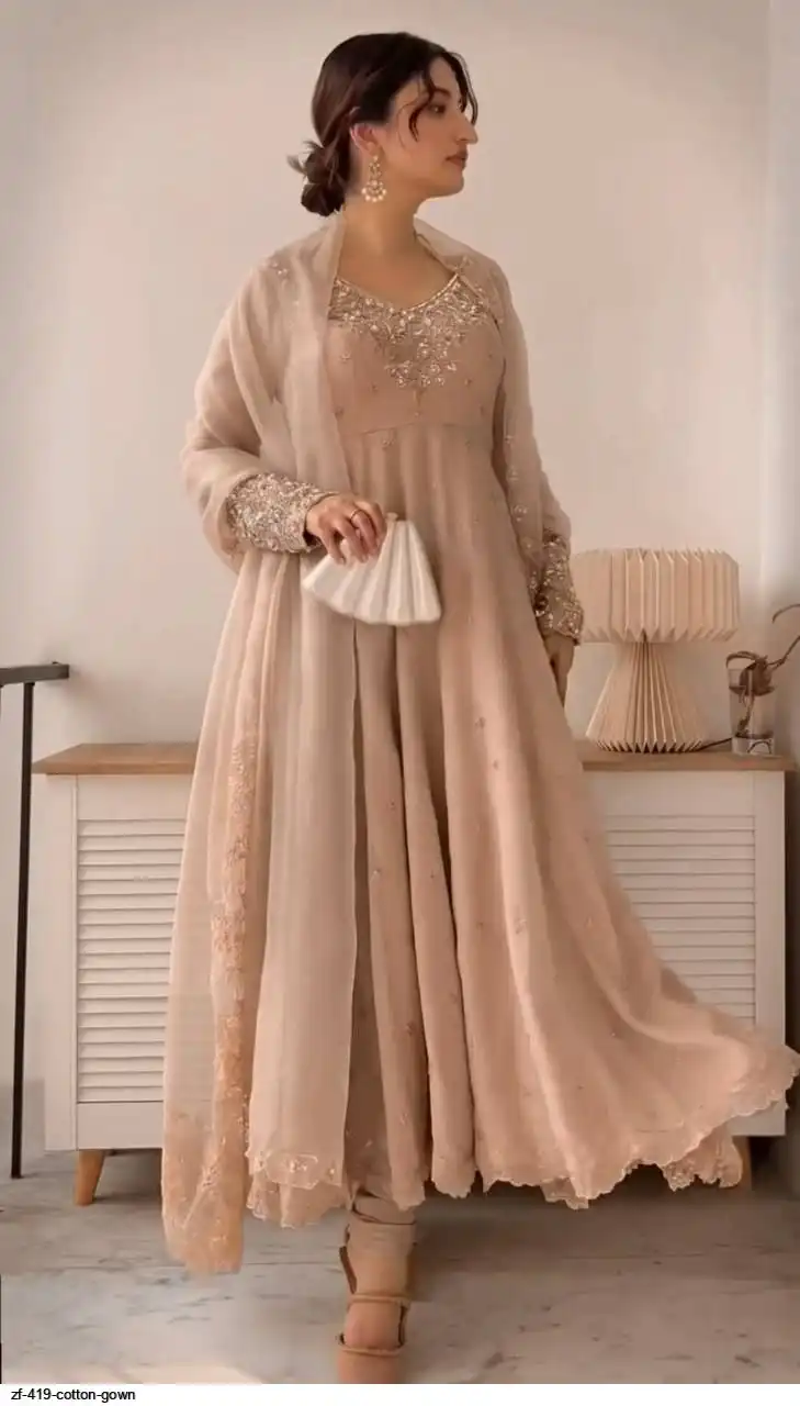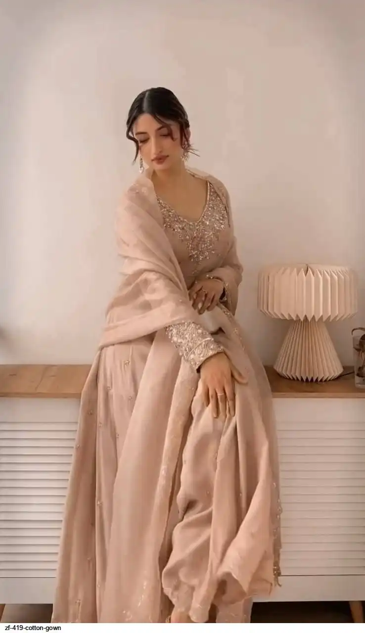 *Gown Fabric* : Heavy Georgette With *Full Heavy Embroidery Rembo Sequence Work With Moti Work* with Sleeve*
