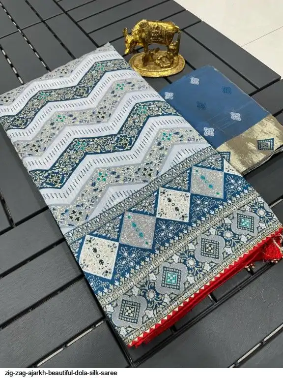 ZIG ZAG AJARKH BEAUTIFUL DOLA SILK SAREE C