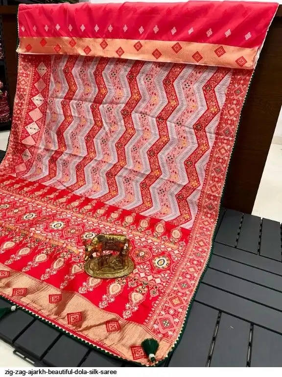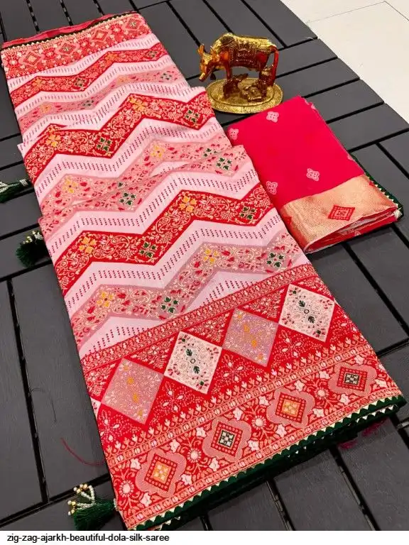 ZIG ZAG AJARKH BEAUTIFUL DOLA SILK SAREE E