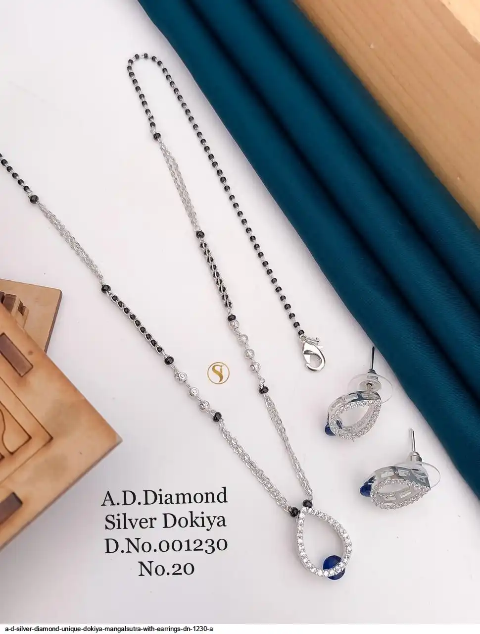 A D SILVER DIAMOND UNIQUE DOKIYA MANGALSUTRA WITH EARRINGS DN 1230 A