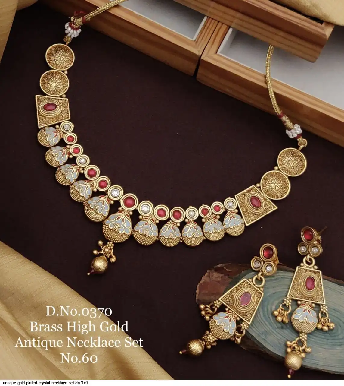 ANTIQUE BRASS CRYSTAL NECKLACE SET DN 370