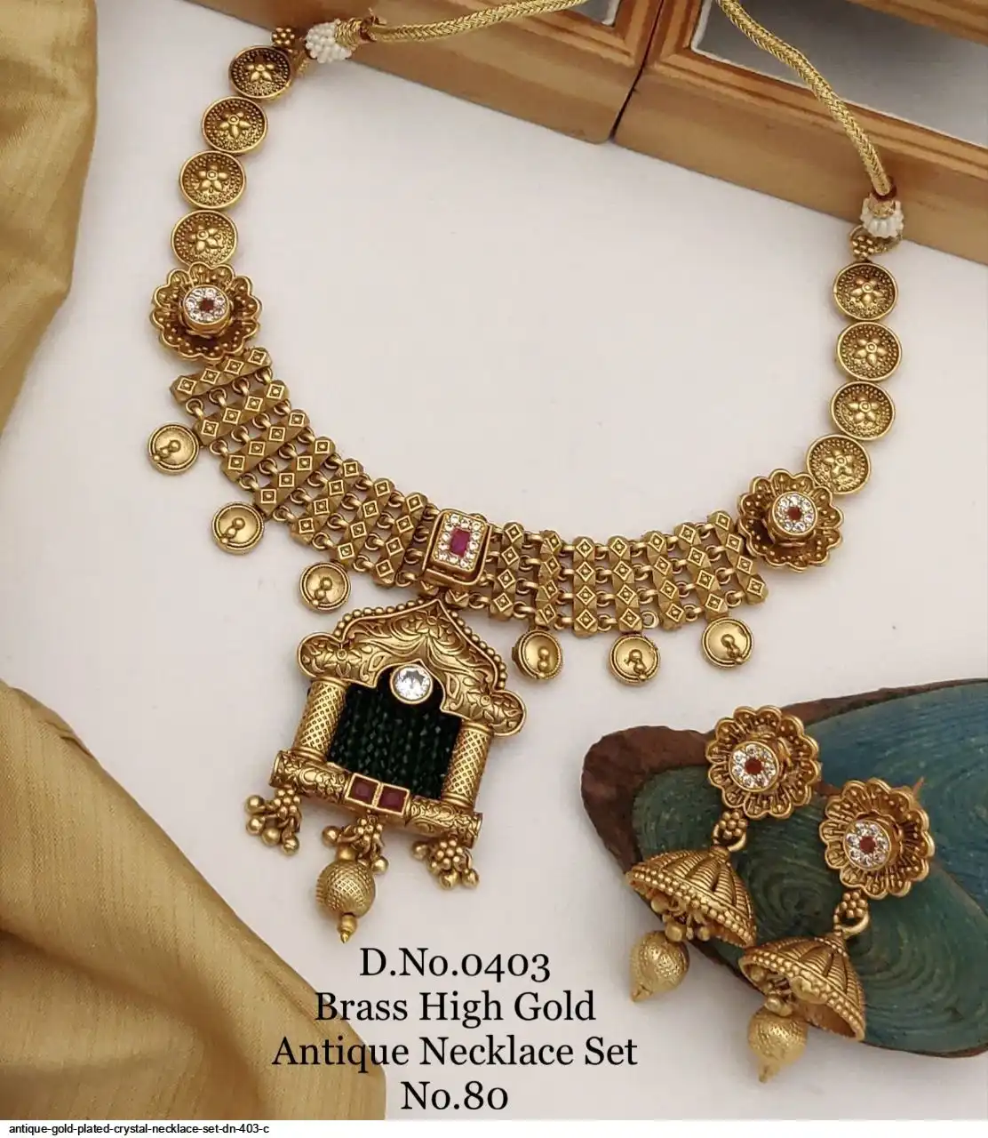ANTIQUE BRASS CRYSTAL NECKLACE SET DN 403 C