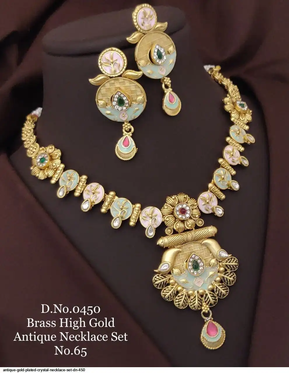 ANTIQUE BRASS CRYSTAL NECKLACE SET DN 450