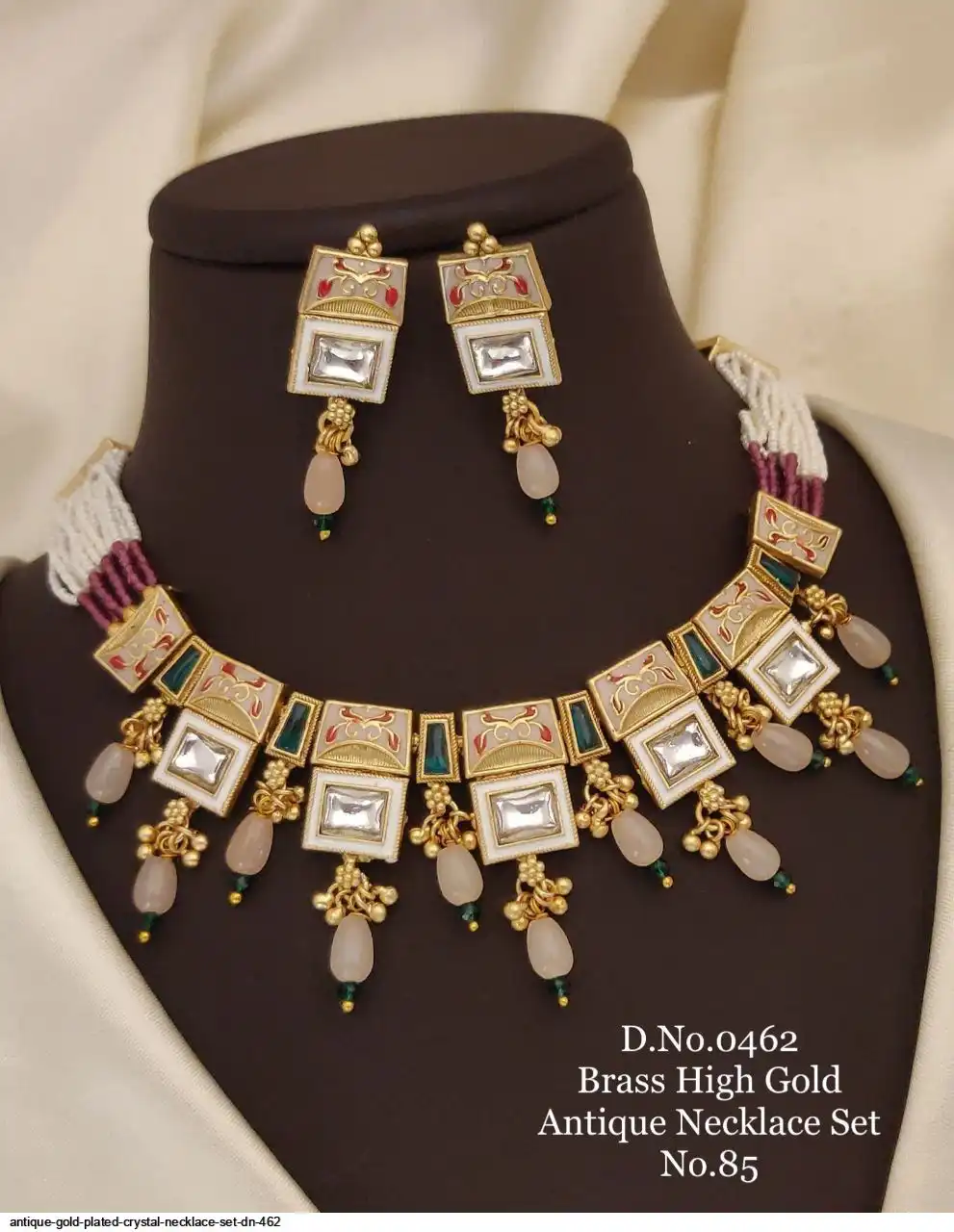ANTIQUE BRASS CRYSTAL NECKLACE SET DN 462