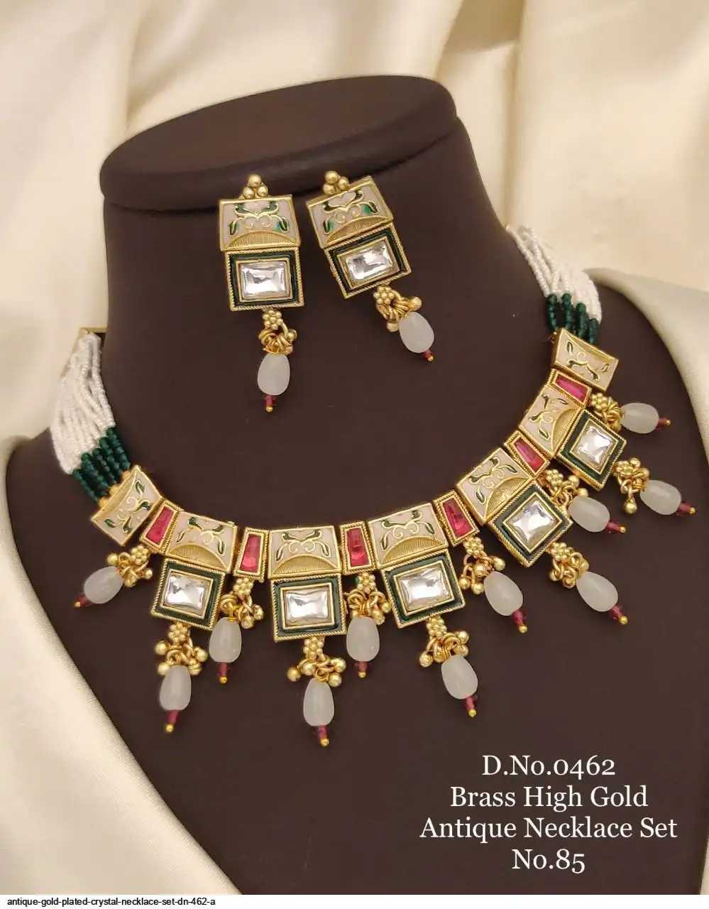 ANTIQUE BRASS CRYSTAL NECKLACE SET DN 462 A