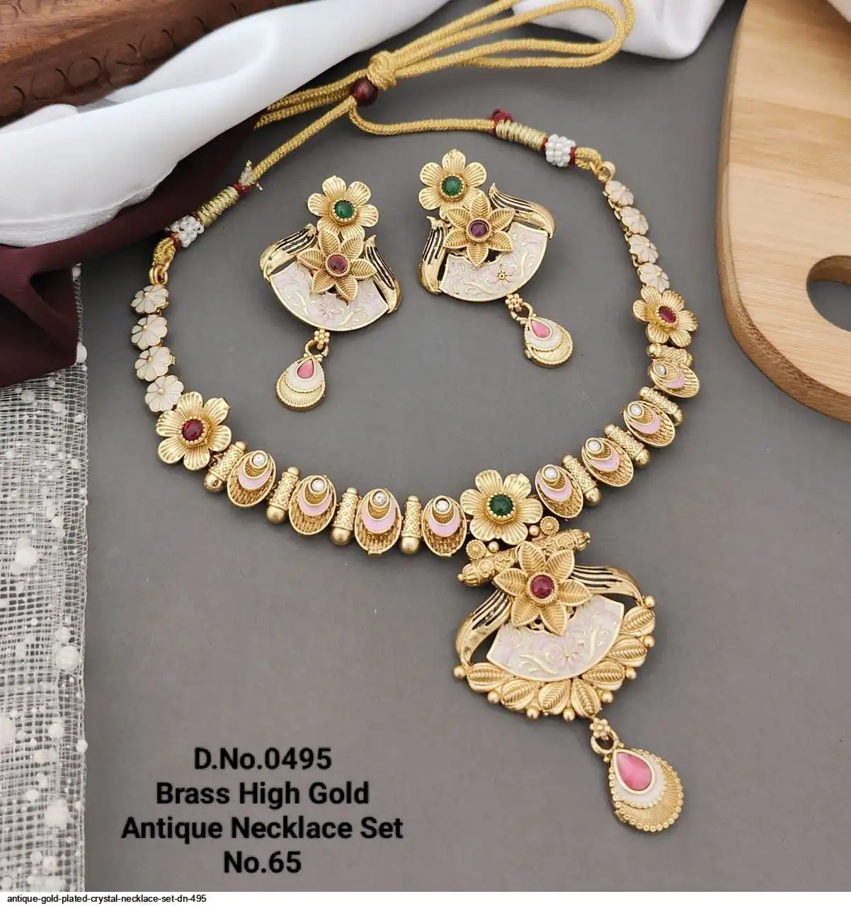 ANTIQUE BRASS CRYSTAL NECKLACE SET DN 495