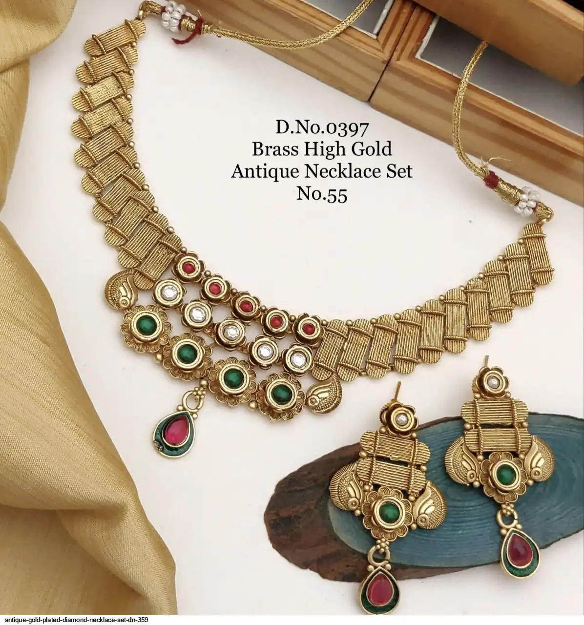ANTIQUE GOLD PLATED DIAMOND NECKLACE SET DN 359