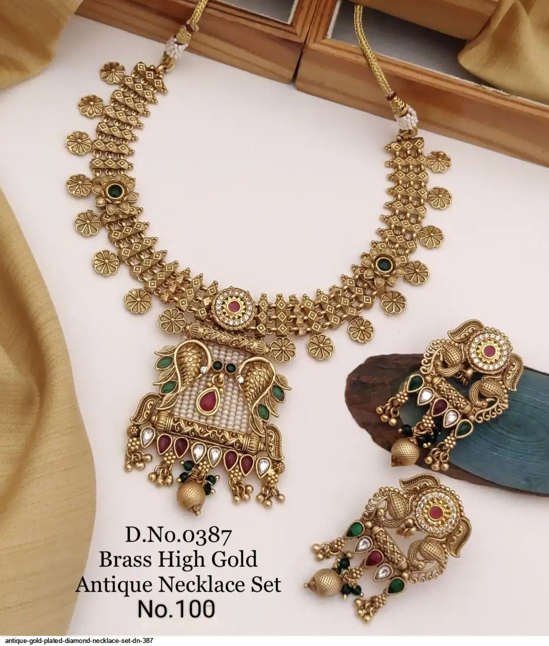 ANTIQUE GOLD PLATED DIAMOND NECKLACE SET DN 387