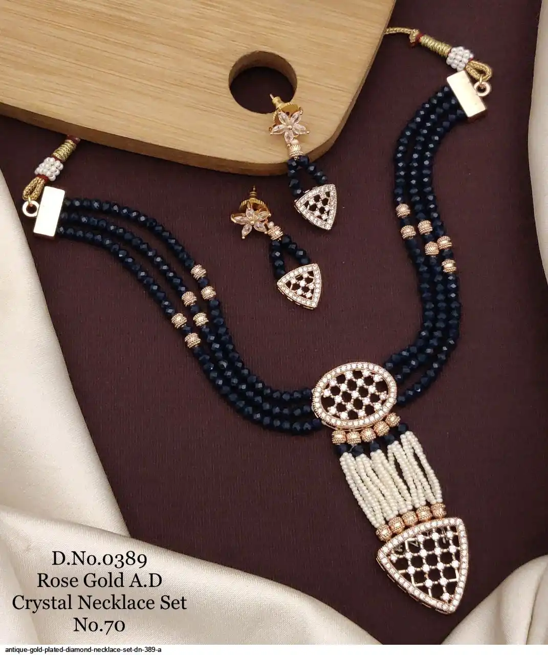 • ANTIQUE GOLD PLATED DIAMOND NECKLACE SET DN 389 A