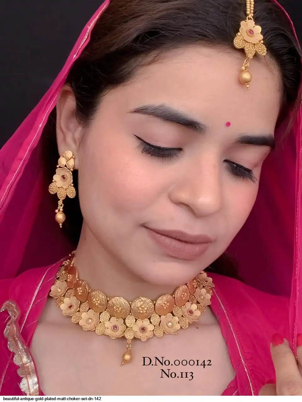 BEAUTIFUL ANTIQUE GOLD PLATED MATT CHOKER SET DN 142