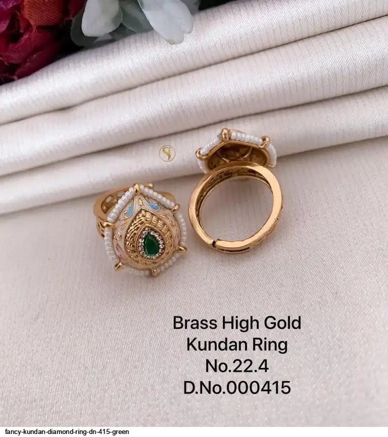 FANCY KUNDAN DIAMOND RING DN 415 GREEN