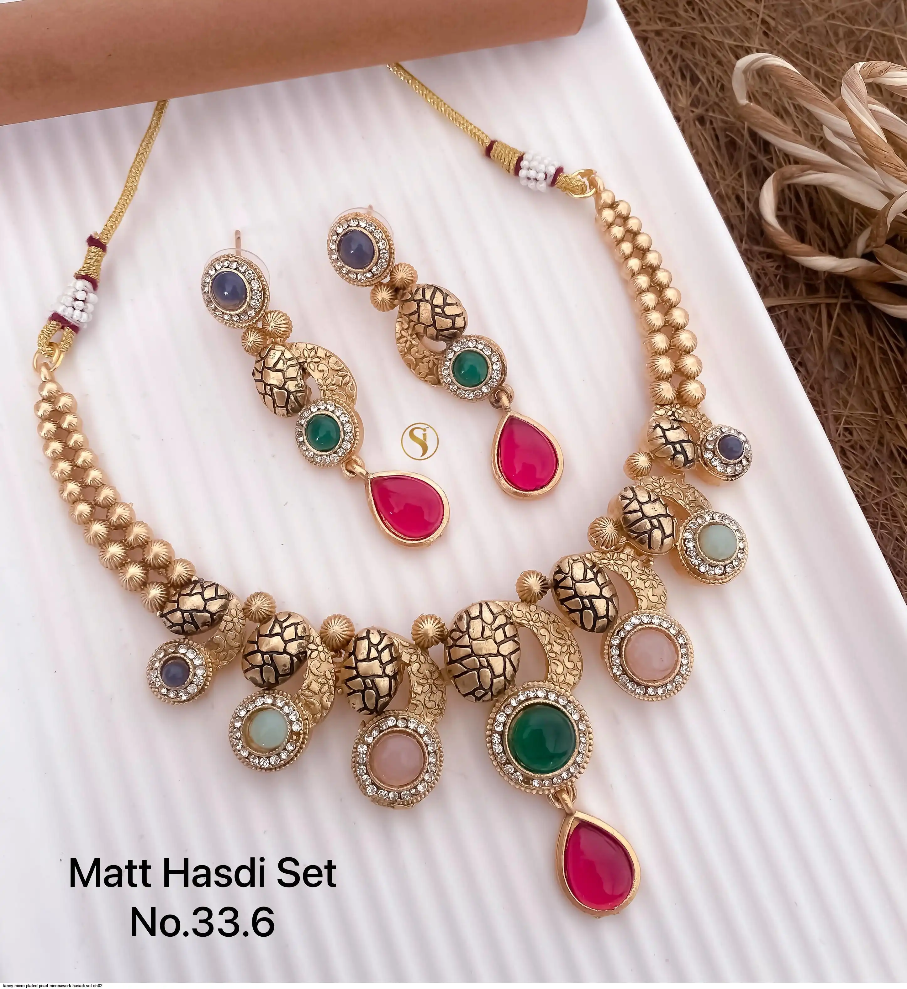 Necklace Matte Finish Micro Plated Pearl & Meenawork Designer New Hasadi set With Earring