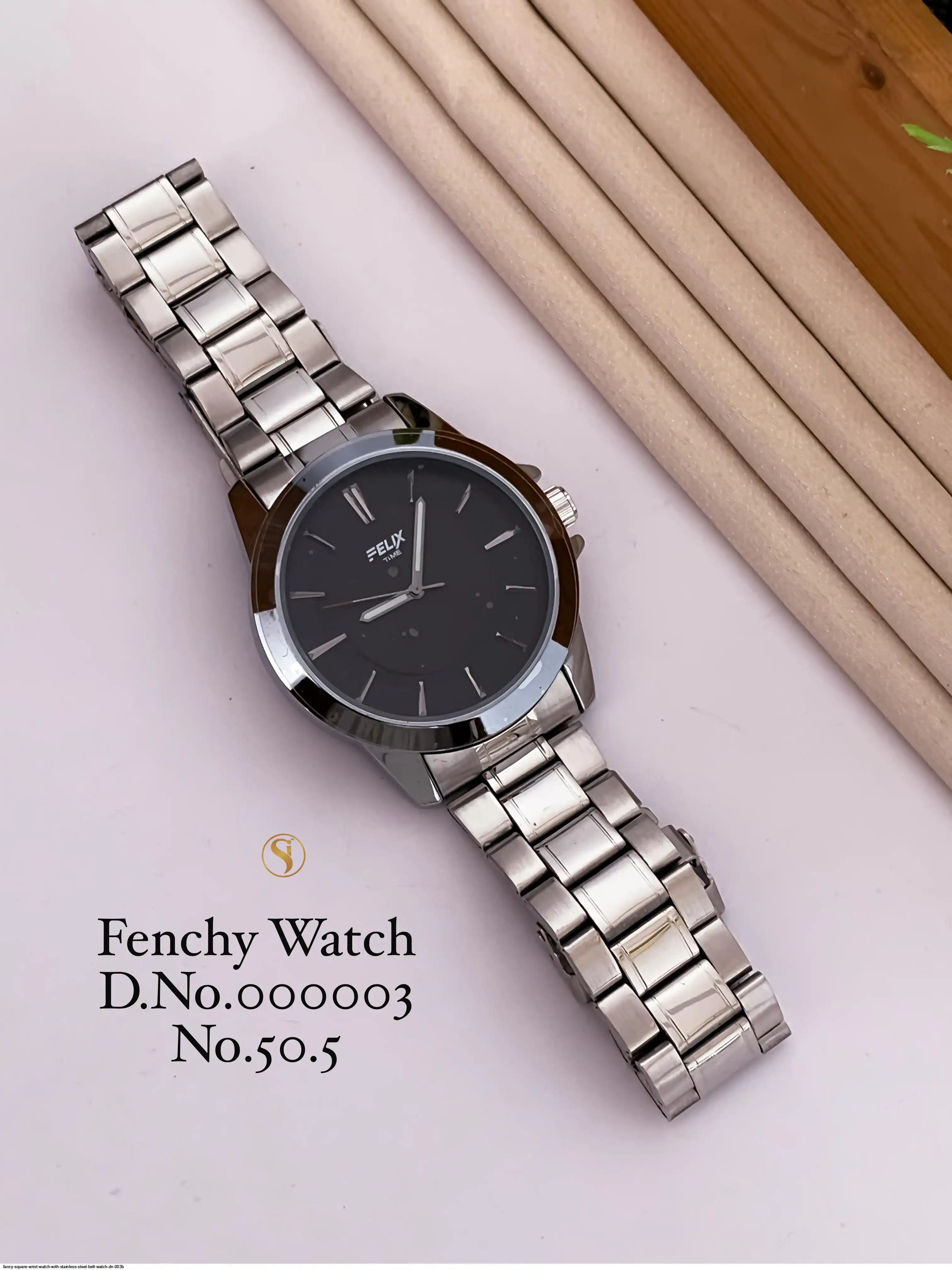 FANCY SQUARE WRIST WATCH WITH STAINLESS STEEL BELT WATCH DN 003B