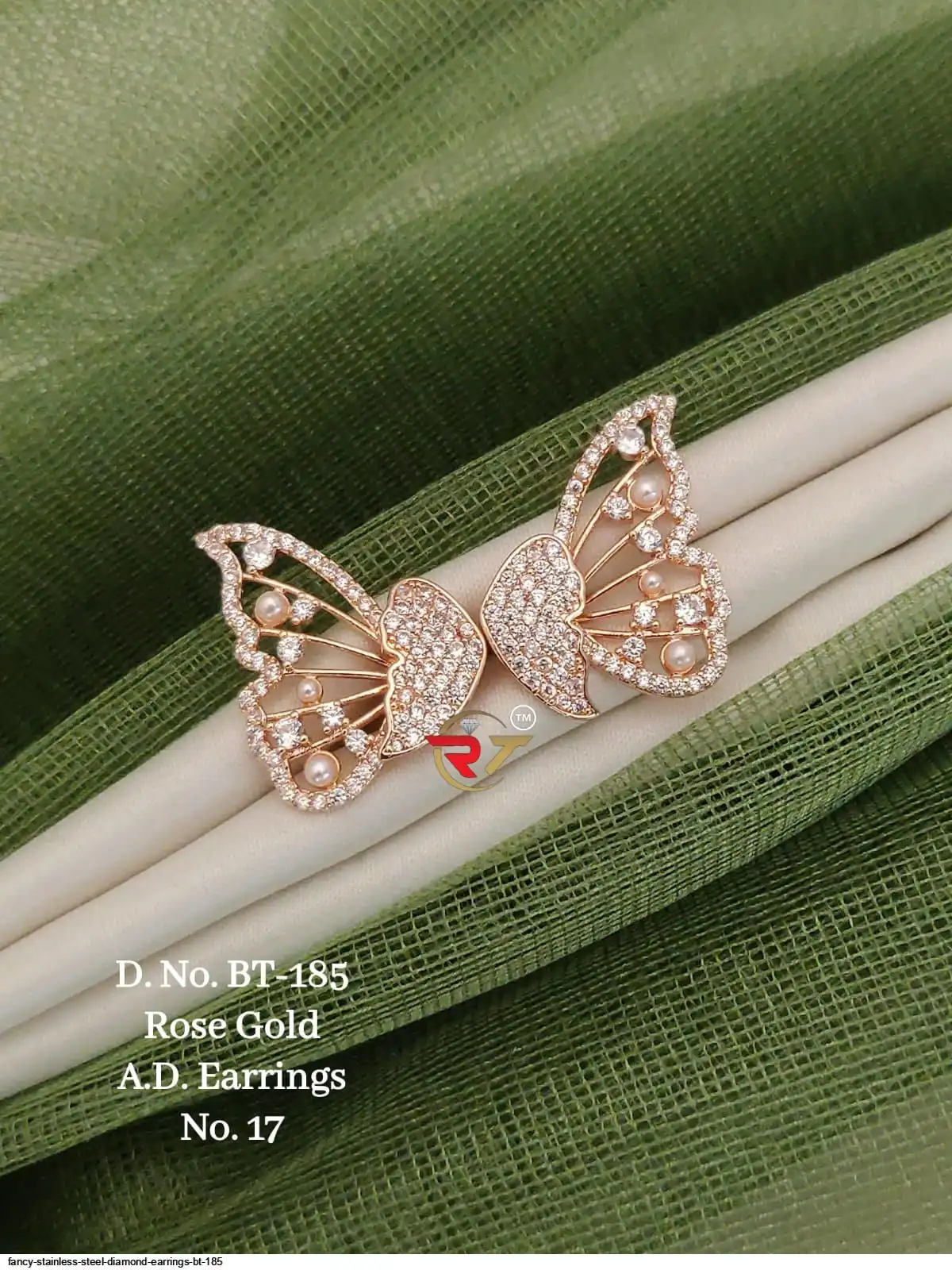FANCY STAINLESS STEEL DIAMOND EARRINGS BT 185