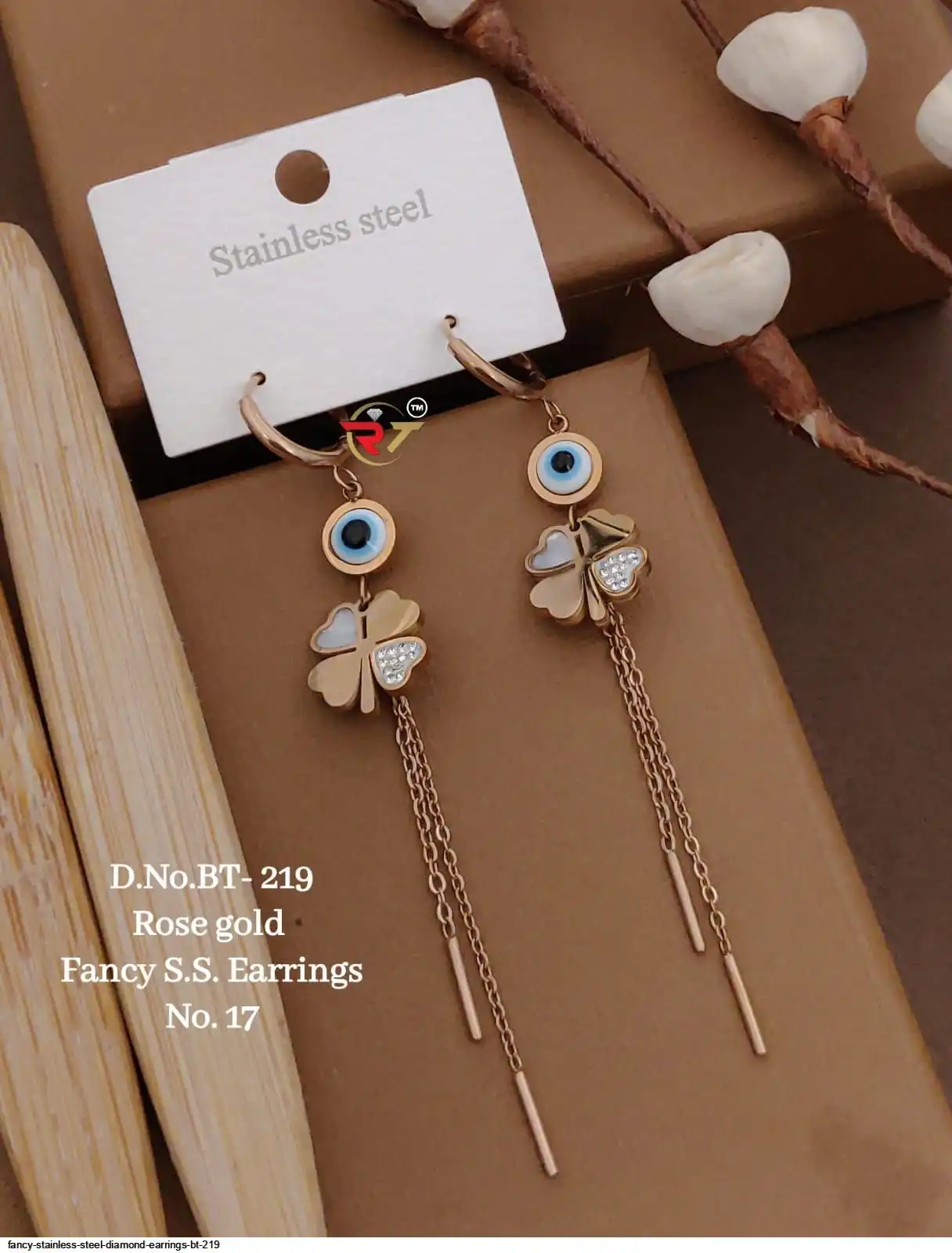 FANCY STAINLESS STEEL DIAMOND EARRINGS BT 219