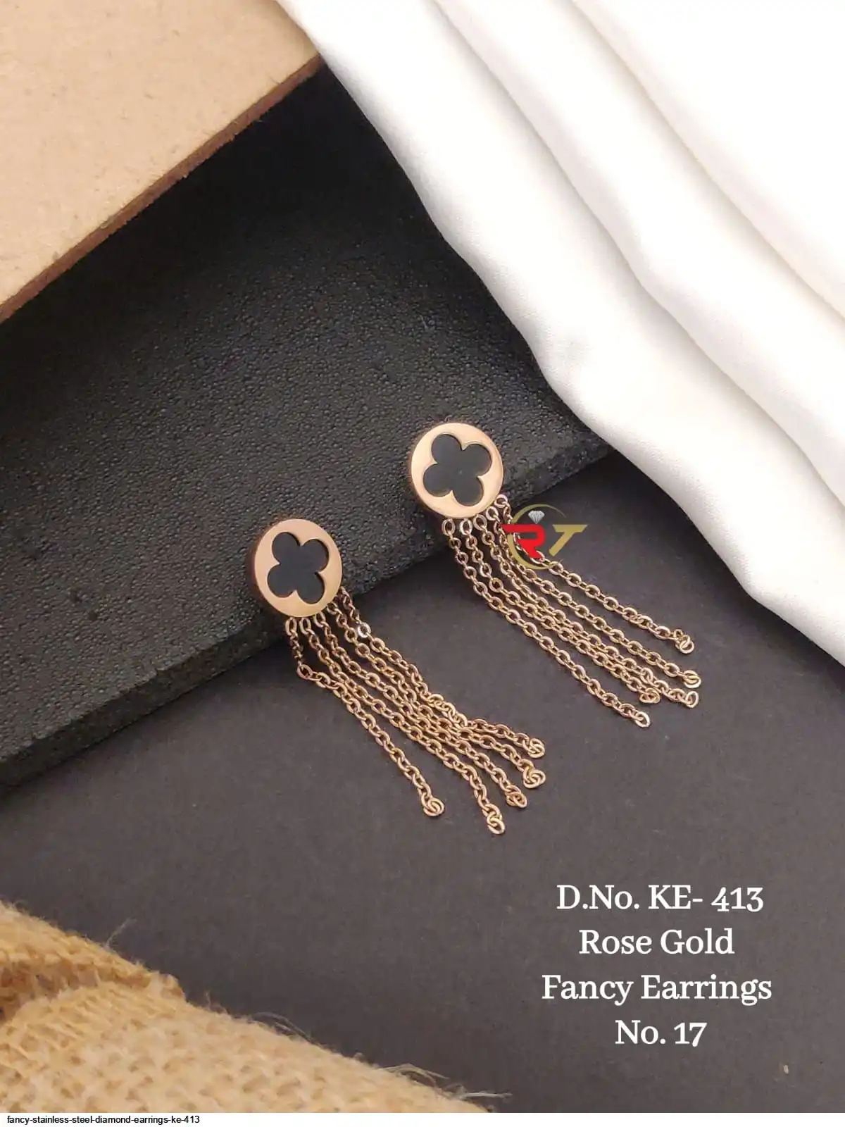 FANCY STAINLESS STEEL DIAMOND EARRINGS KE 413