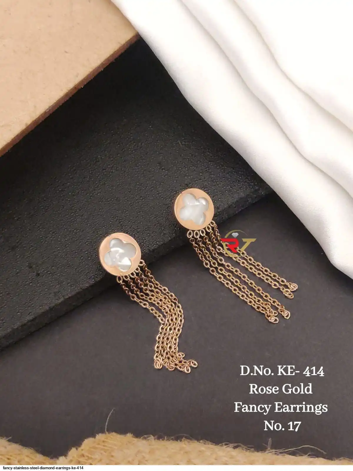 FANCY STAINLESS STEEL DIAMOND EARRINGS KE 414