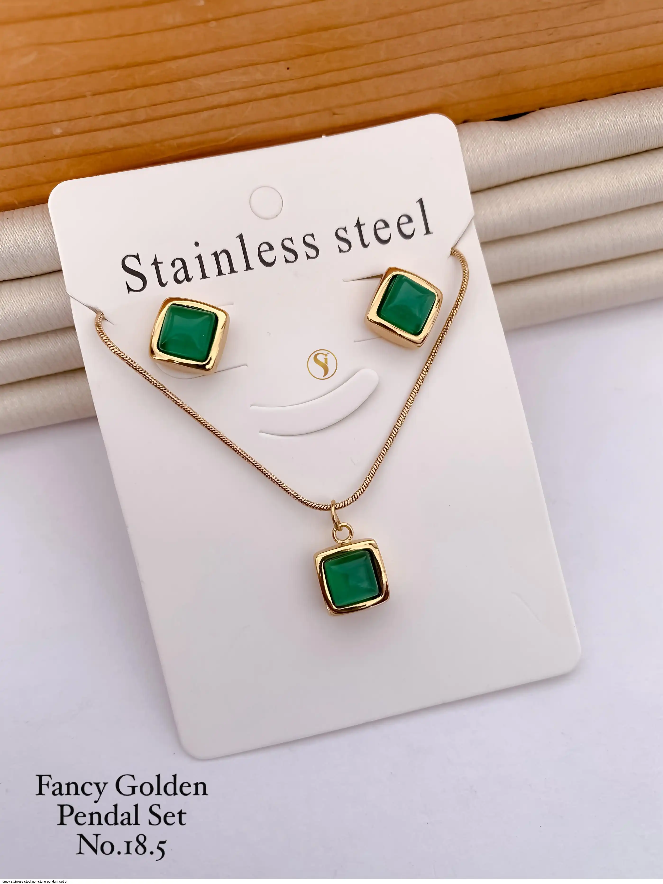 FANCY STAINLESS STEEL GEMSTONE PENDANT SET E