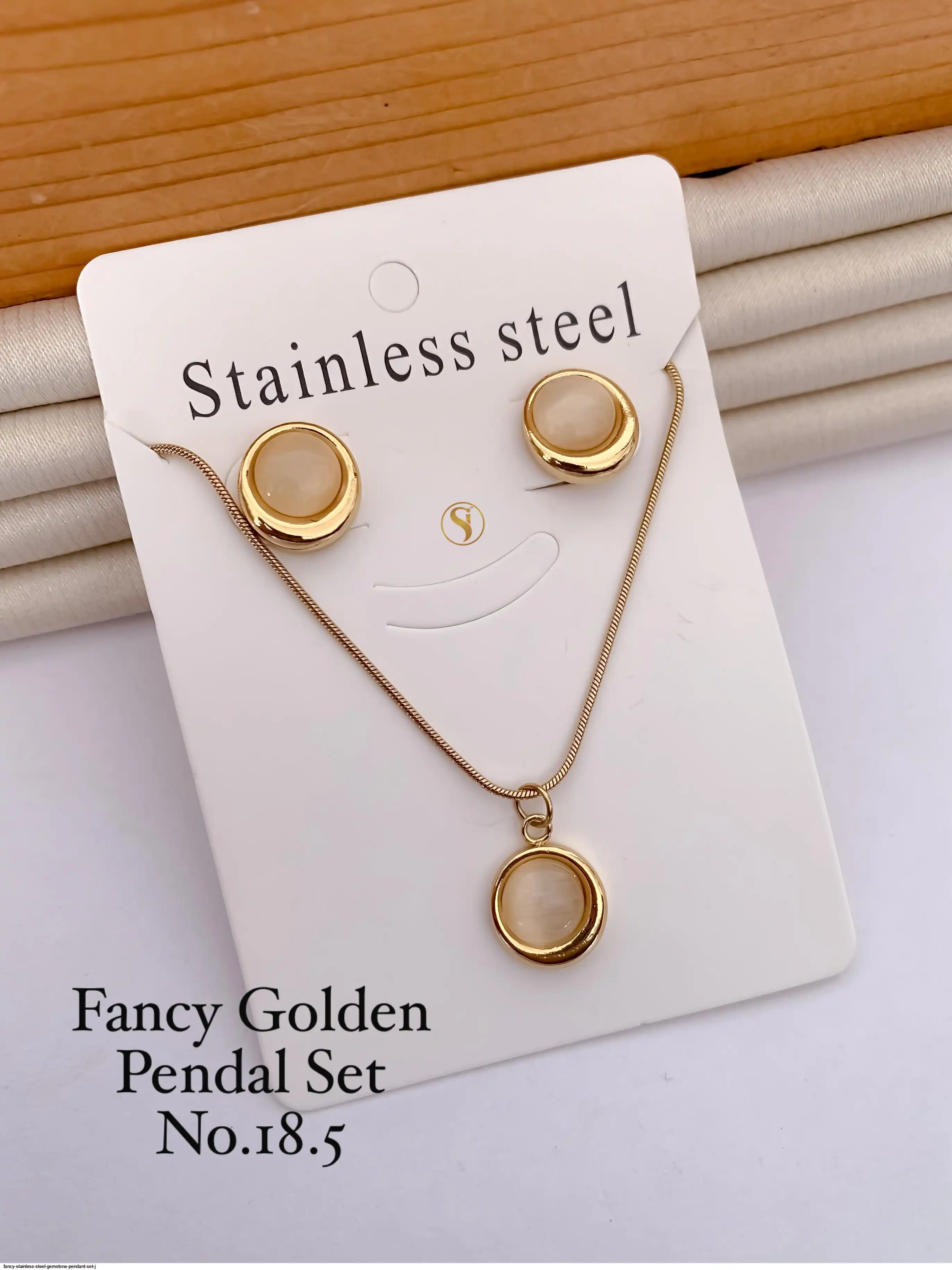 FANCY STAINLESS STEEL GEMSTONE PENDANT SET J
