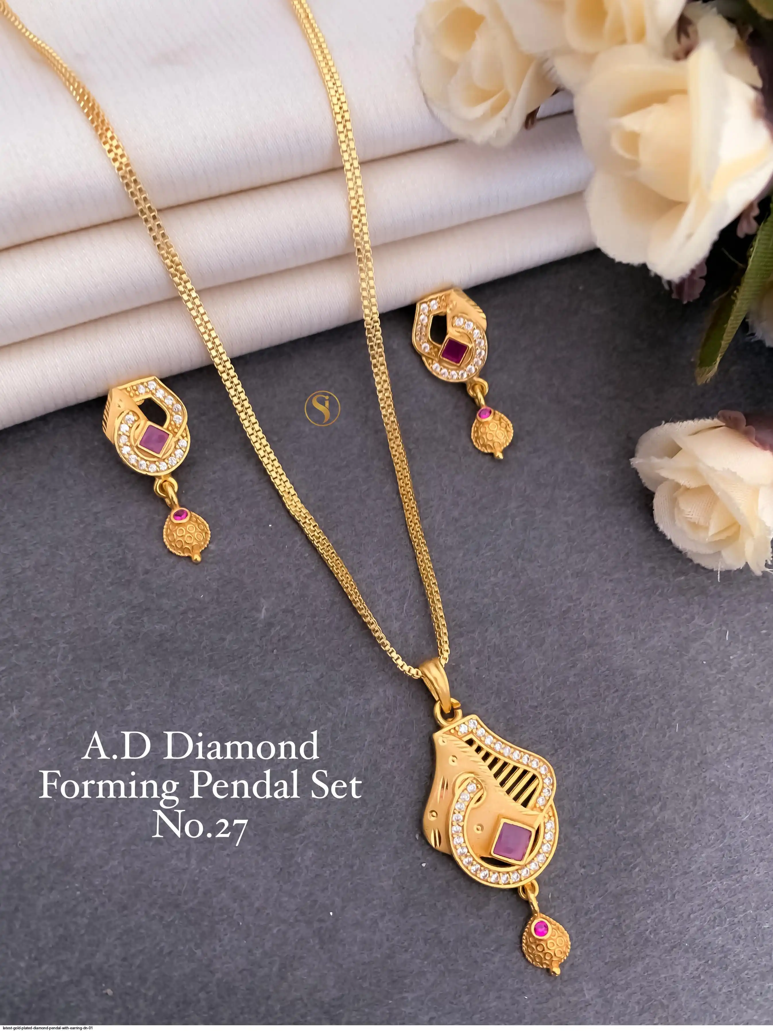 LATEST GOLD PLATED DIAMOND PENDAL WITH EARRING DN 01