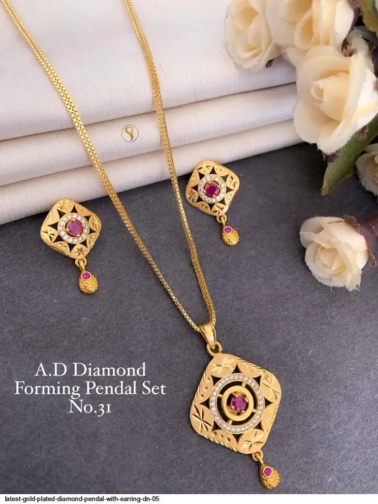 LATEST GOLD PLATED DIAMOND PENDAL WITH EARRING DN 05